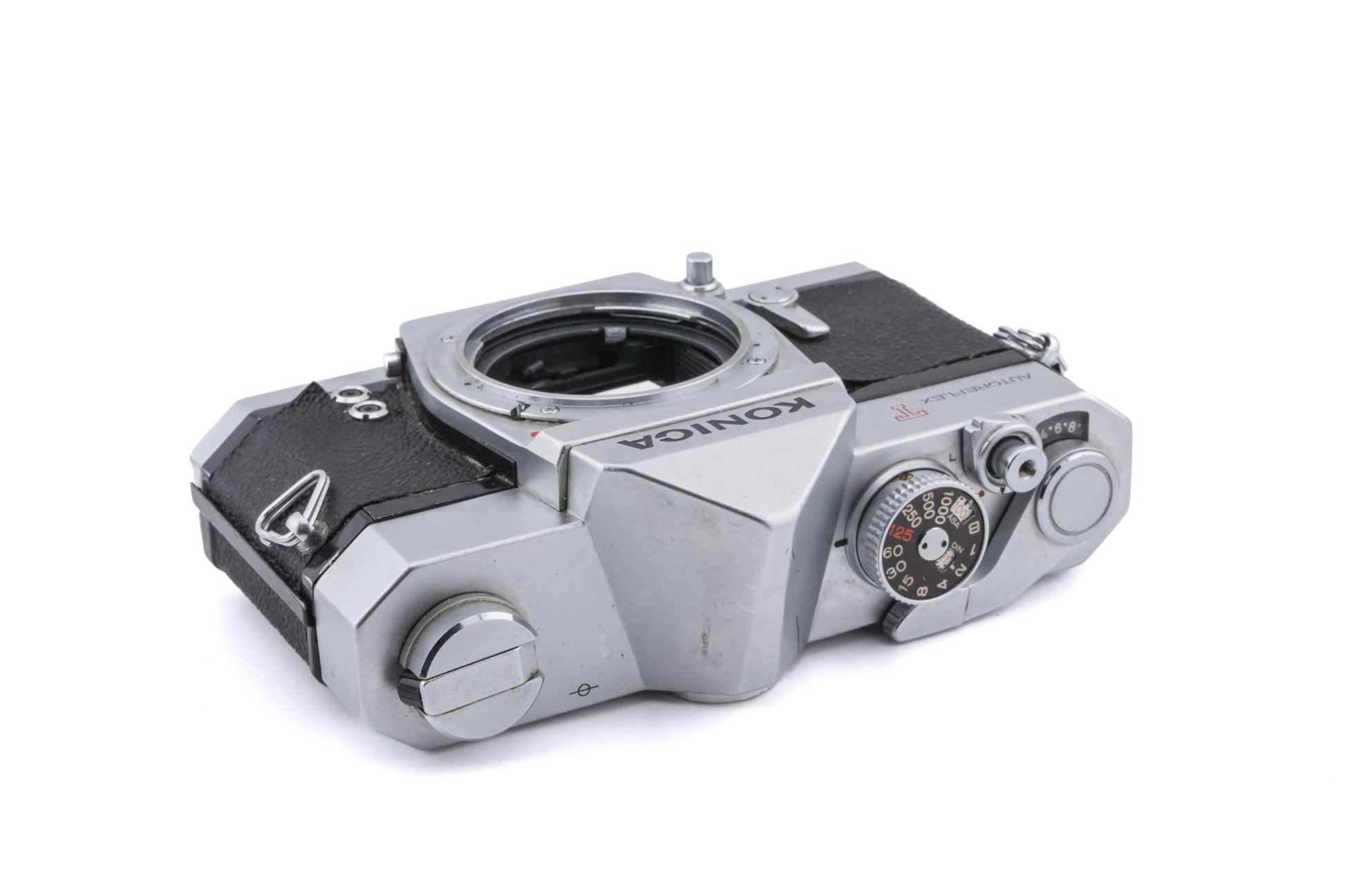 Manual focus AR-mount 35mm SLR camera released by Konica in 1968. It was the first 35mm SLR with auto-exposure and TTL metering. Metal body available in black & silver.