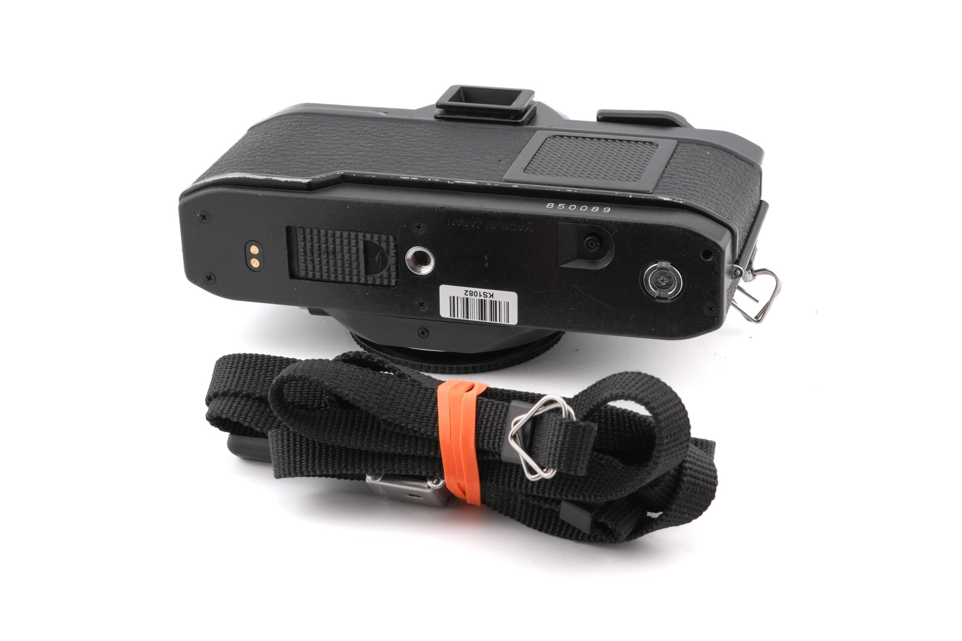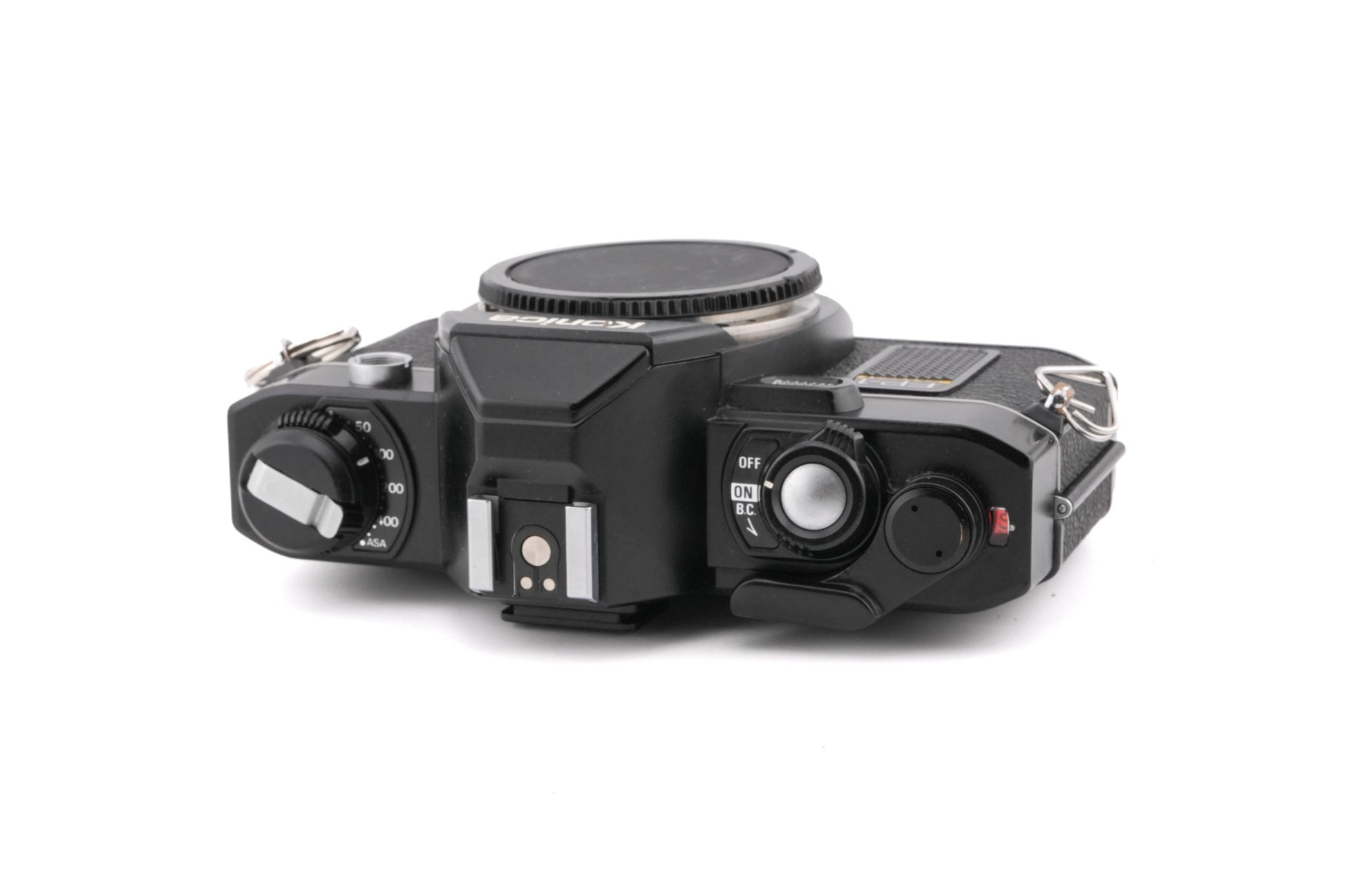 Manual focus AR-mount 35mm SLR camera made by Konica. In AE mode the camera operated with only 3 possible apertures, f2.8, f5.6, or f11, and would use shutter speeds from 1/30 to 1/1000 sec. Metal body available in black.