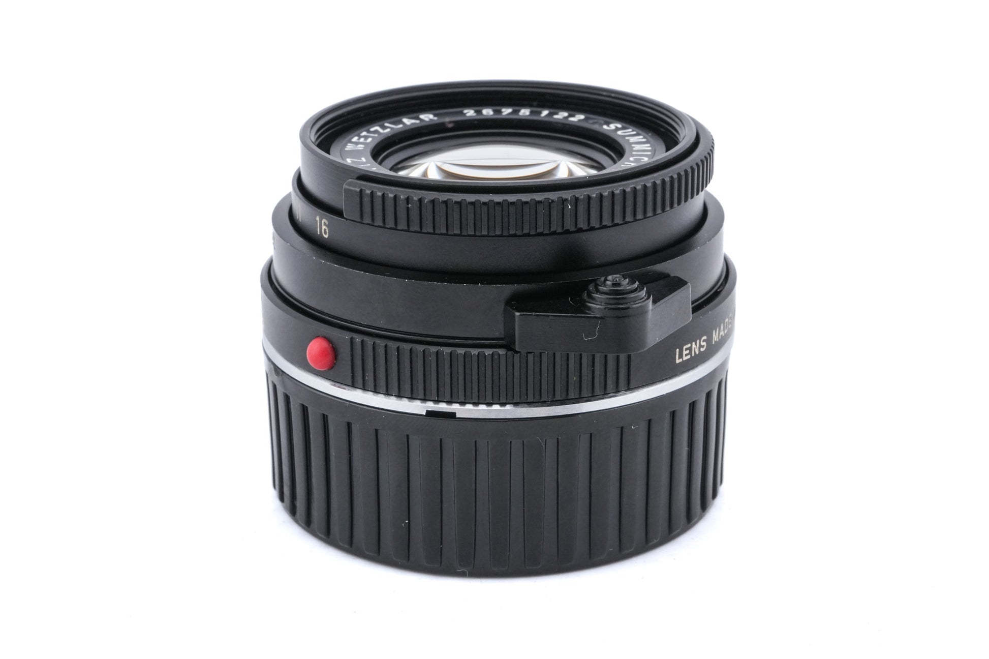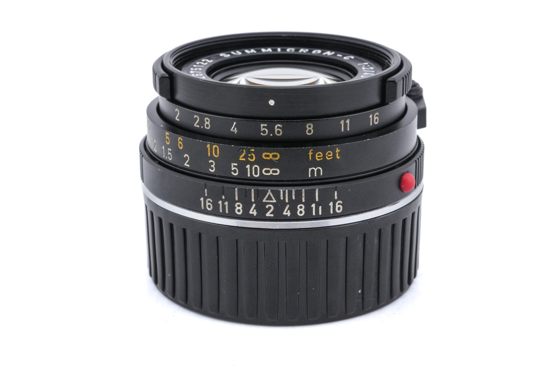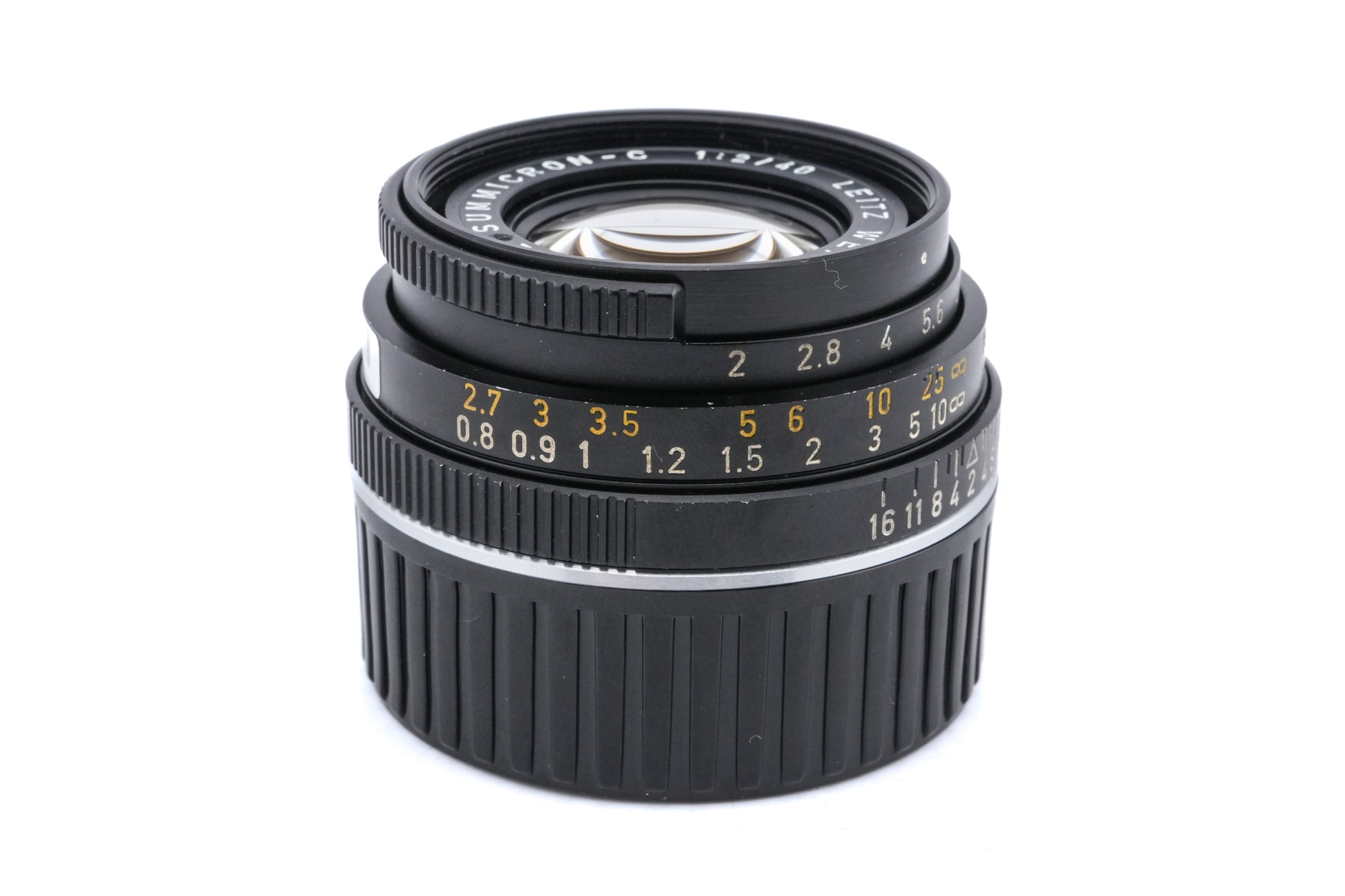 Manual focus wide normal lens made for M-mount rangefinder cameras introduced by Leica in 1973. It was designed specifically to work with the Leica CL and Minolta CLE, both of which have 40mm frame lines built in. It will bring up 50mm frame lines on other M-mount cameras. Metal body available in black (11542).