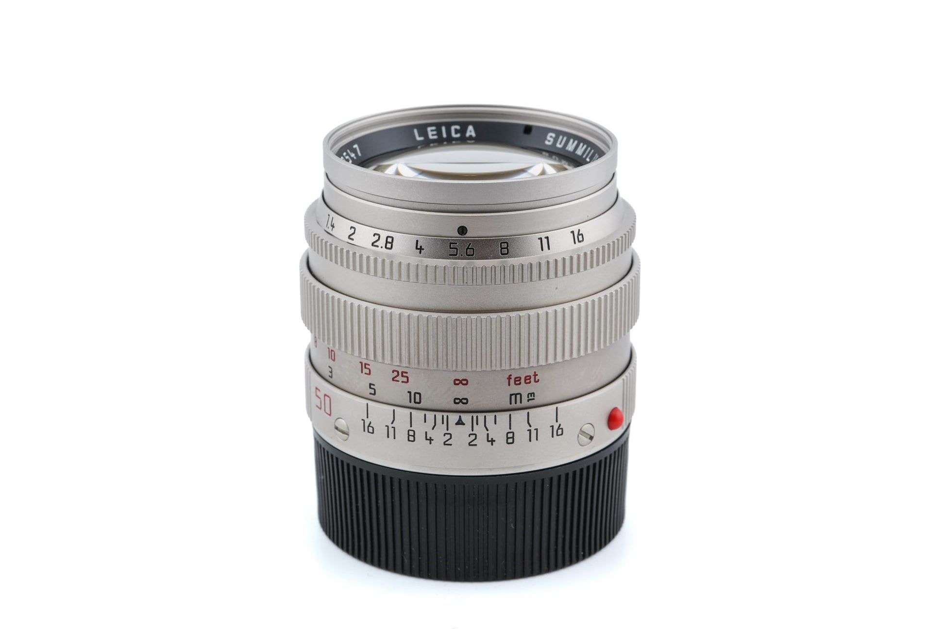 Manual focus normal lens made for M-mount rangefinder cameras introduced by Leica in 1989. It was a kit lens paired with the special limited platinum-plated Leica M6 with snakeskin covering to commemorate 150 years of photography and 75 years of Leica photography. 1250 units were produced. Metal body available in a platinum color.