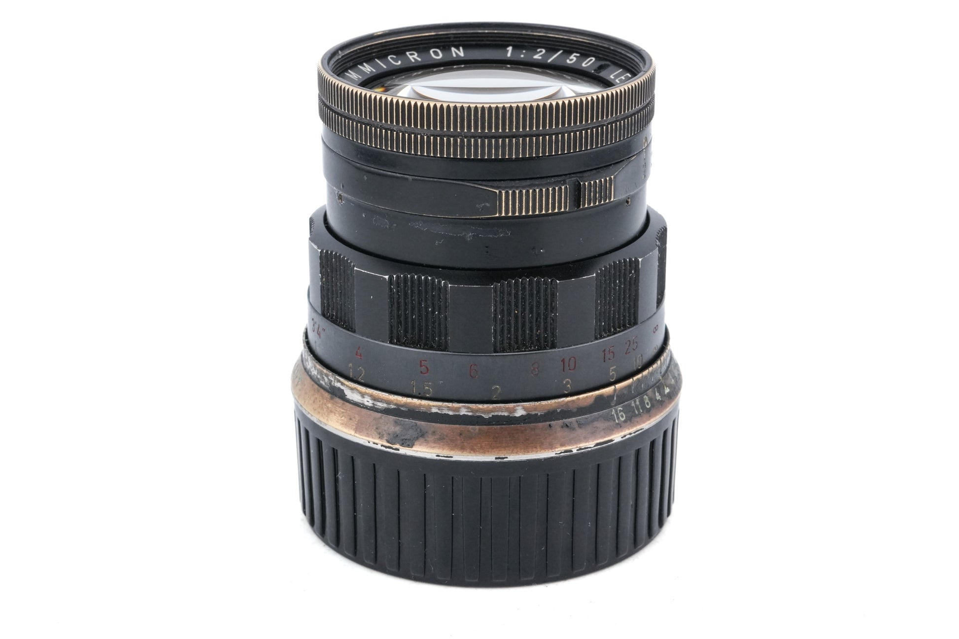 Manual focus normal lens made for M-mount rangefinder cameras introduced by Leica initially in 1956. Leica made many different versions of the 5cm f2 Summicron that differ in both design and optical formula. This is the second model of the lens. The body changed to a non-collapsible, rigid design with a slightly different optical formula. The number of elements stayed the same, but the shape of the elements in the front two groups had changed slightly. The lens became available in black in 1961. Early black ones are painted, like this one, and later ones are anodized. Metal body available in black paint.