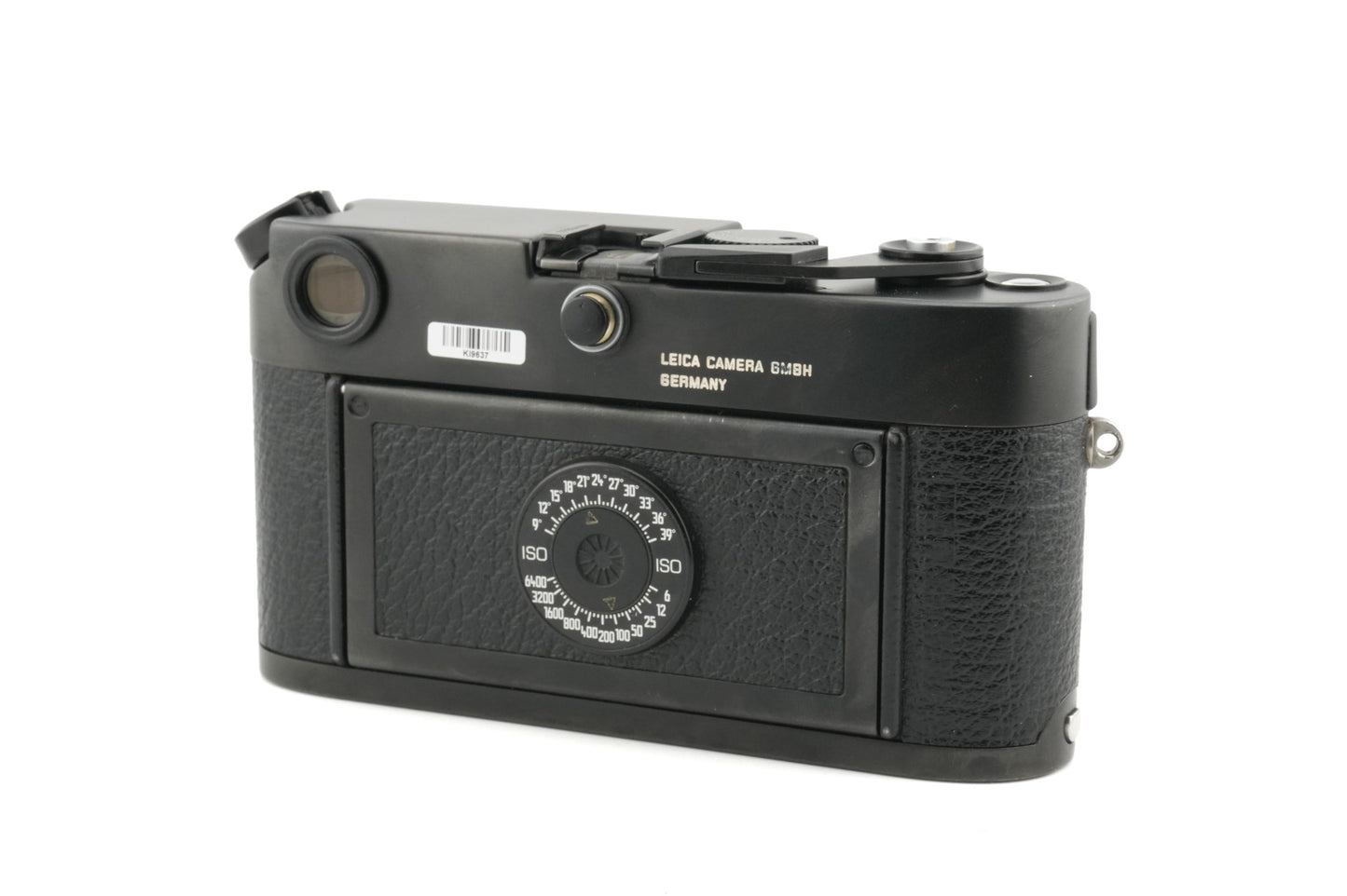 Manual focus M-mount 35mm rangefinder camera introduced by Leica in 1984. The M6 is similar to the M4-P but adds through-the-lens metering. The top cover was changed to a zinc casting making the M6 stronger than the previous M series cameras. Like the M4-P the M6 has a 0.72x viewfinder with framelines for 28/90mm, 35/135mm, and 50/75mm. Metal body available in black (10404).
