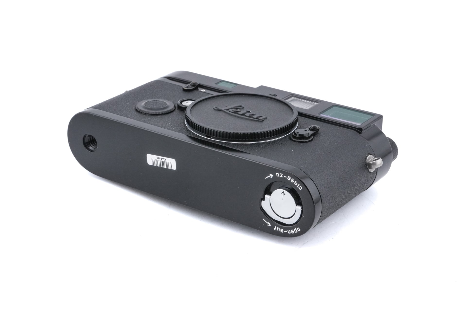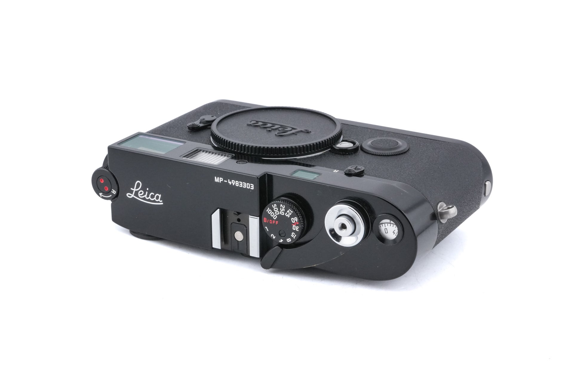 Manual focus M-mount 35mm rangefinder camera introduced by Leica in 2003. This is a new modern version of the original MP from 1956. This time, the “MP” stands for “Mechanical Perfection”. It features fully mechanical controls akin to the M3 and a built-in TTL exposure meter similar to that on the M6. It is compatible with the LEICAVIT-M rapid film advancer accessory. Leica offered these cameras "à la carte" for a period, allowing customization of colors, features, finders, and materials. The available viewfinder magnifications were: 0.58x, 0.72x, and 0.85x. This is the 0.72x version with frame lines for 28/90mm, 35/135mm, and 50/75mm. Metal body available in black paint (10302).