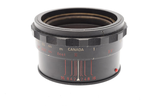 Short focusing mount for 9cm f2 Summicron lens head with preset diaphragm to be used on Visoflex II / Visoflex III. Not compatible with 135mm f2.8 Elmarit-M lens head, for that use ZOOEP / 16462.