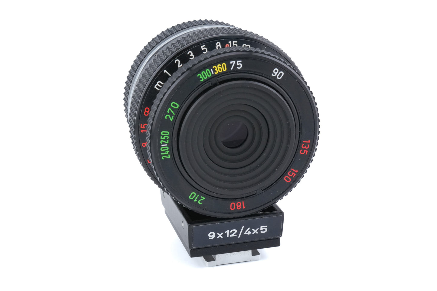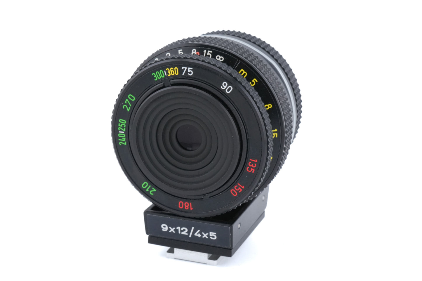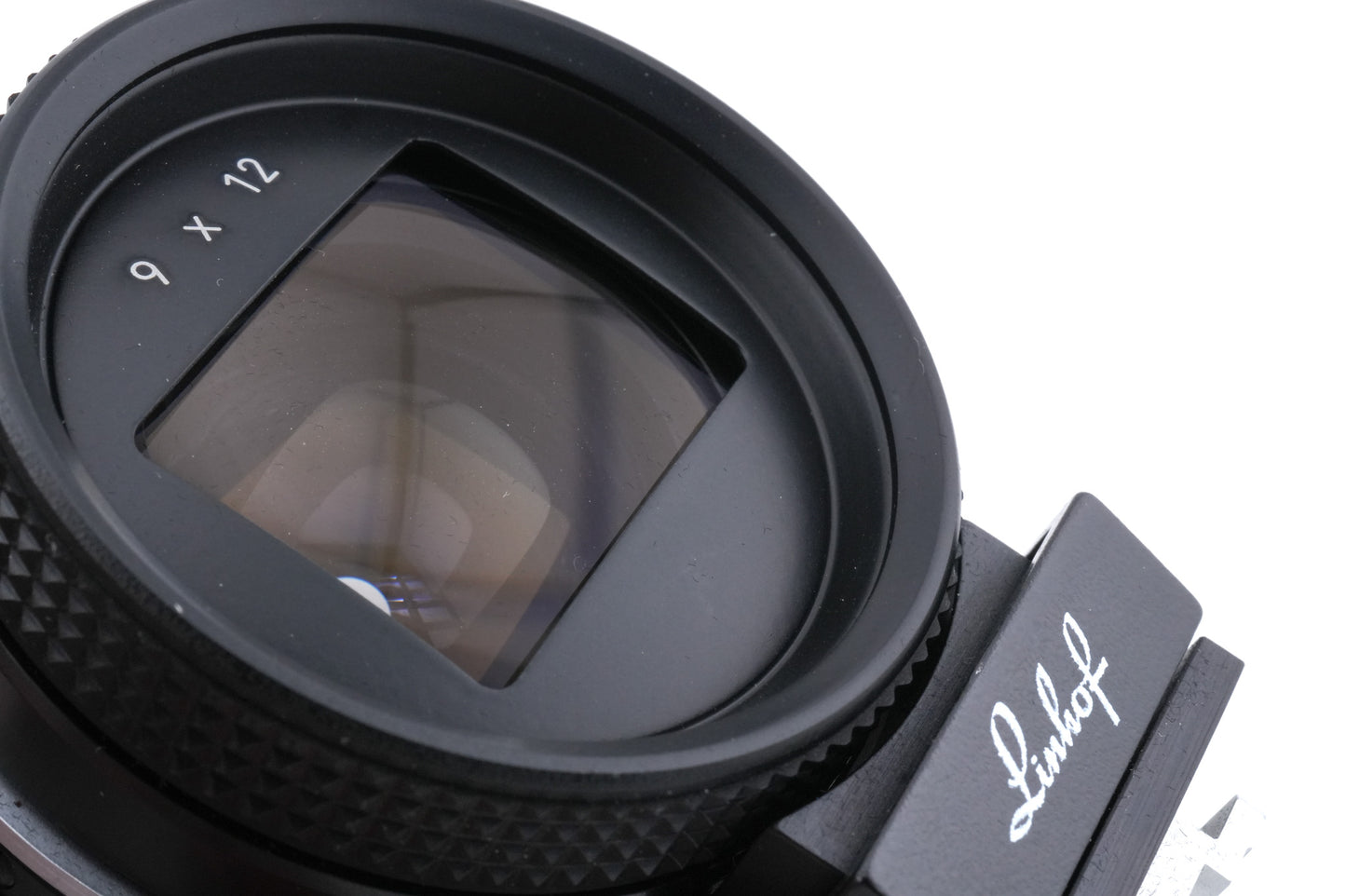 Optical viewfinder with multiple focal lengths introduced by Linhof. It has focal lengths from 57mm to 360mm as well as parallax correction. Metal body available in black.