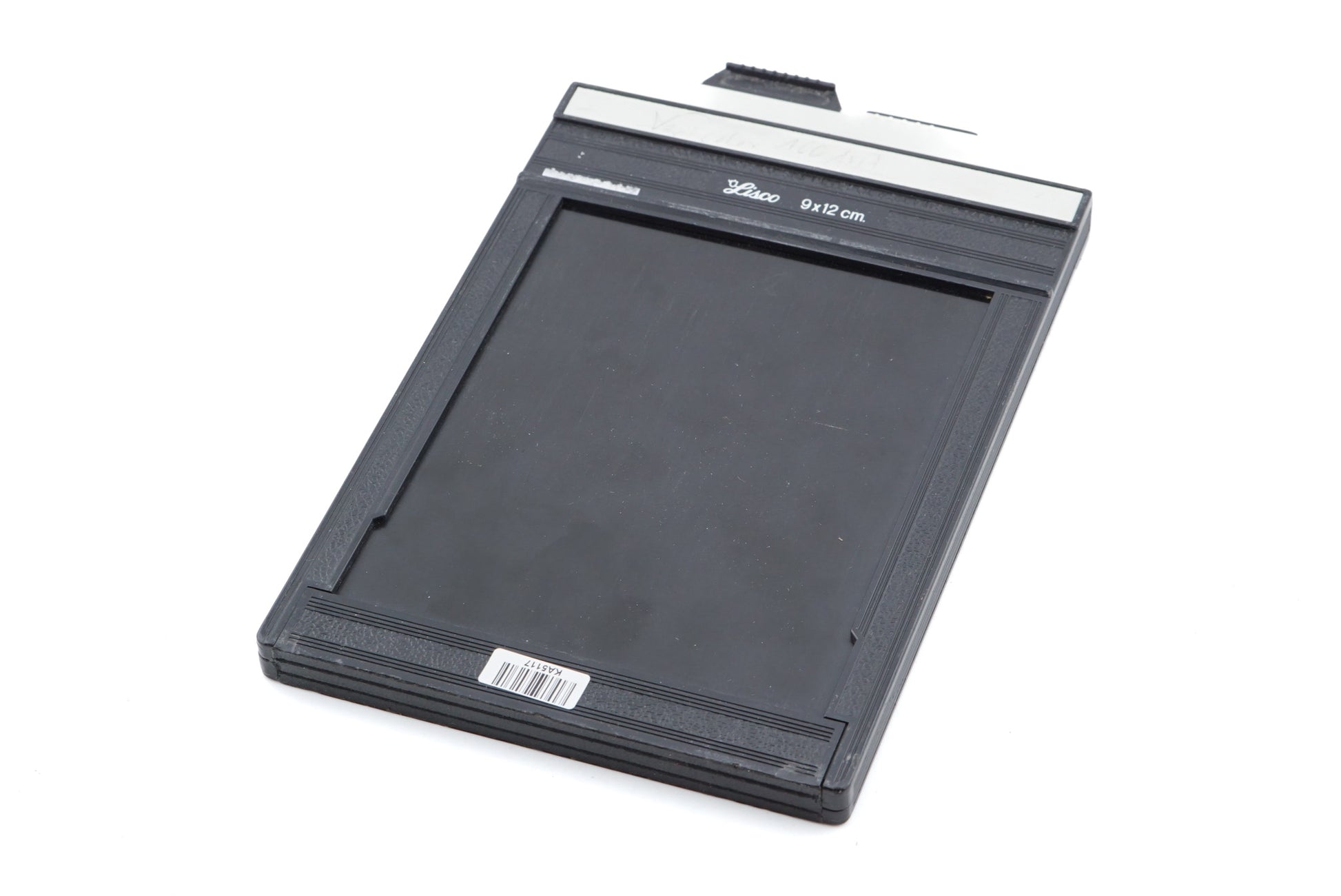 9x12 cm sheet film holder made by Lisco. Each holder can hold two sheets of film, one on each side. Plastic body available in black.