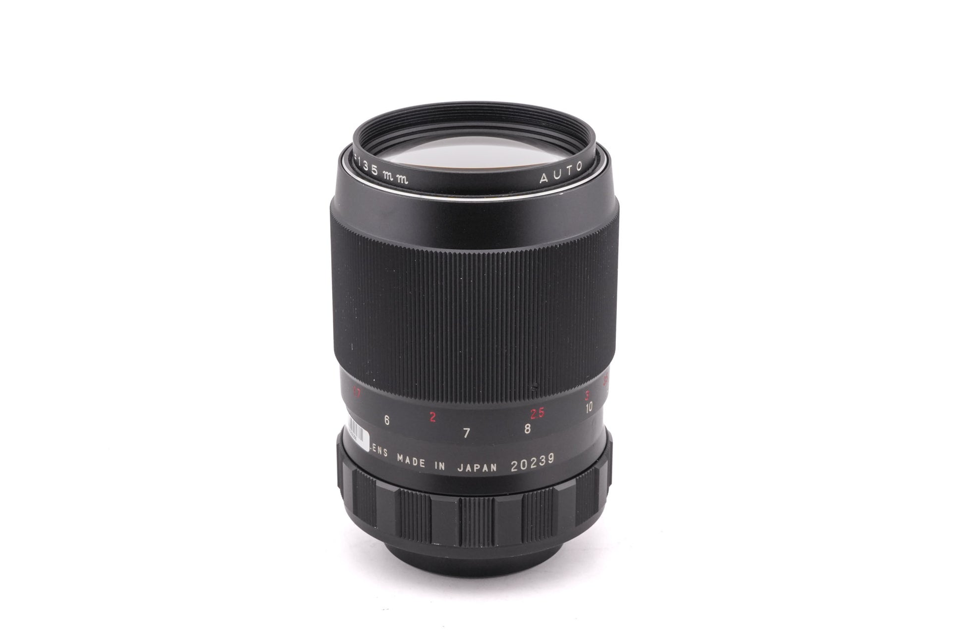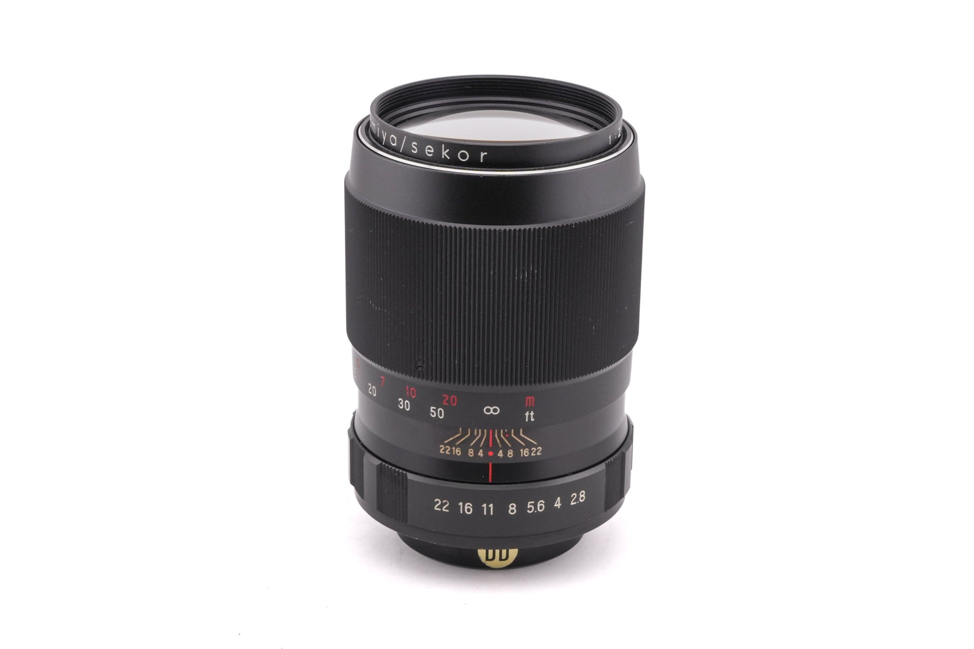 Manual focus telephoto lens for M42 mount 35mm SLRs made by Mamiya. Due to the open-aperture TTL system, these lenses can only be used with Mamiya M42 bodies. Metal body available in black.
