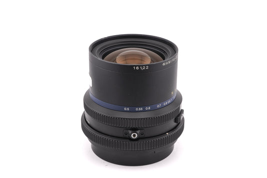 Manual focus wide-angle lens made for Mamiya RZ67 medium format cameras, introduced by Mamiya in 1982. It gives an equivalent focal length of 25mm on 35mm full-frame. Metal body available in black.