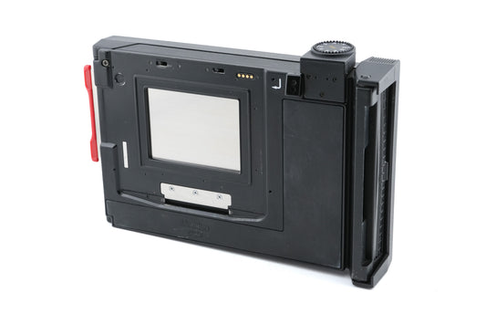 Instant film back made for 645 cameras by Mamiya/Polaroid. It allows the use of Polaroid Type 100 pack film. Plastic body available in black.