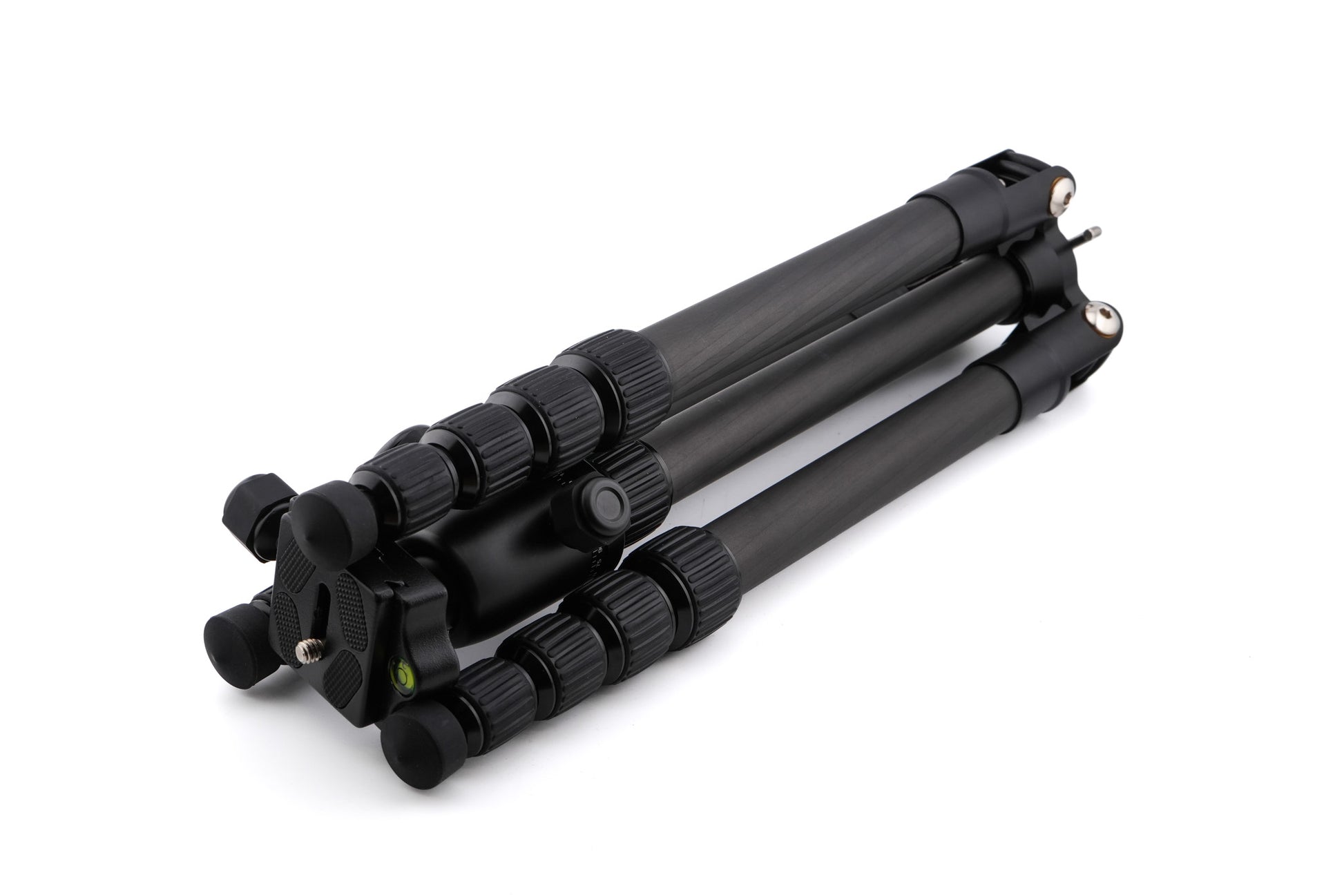 Camera tripod made by Manfrotto. Carbon construction available in black.
