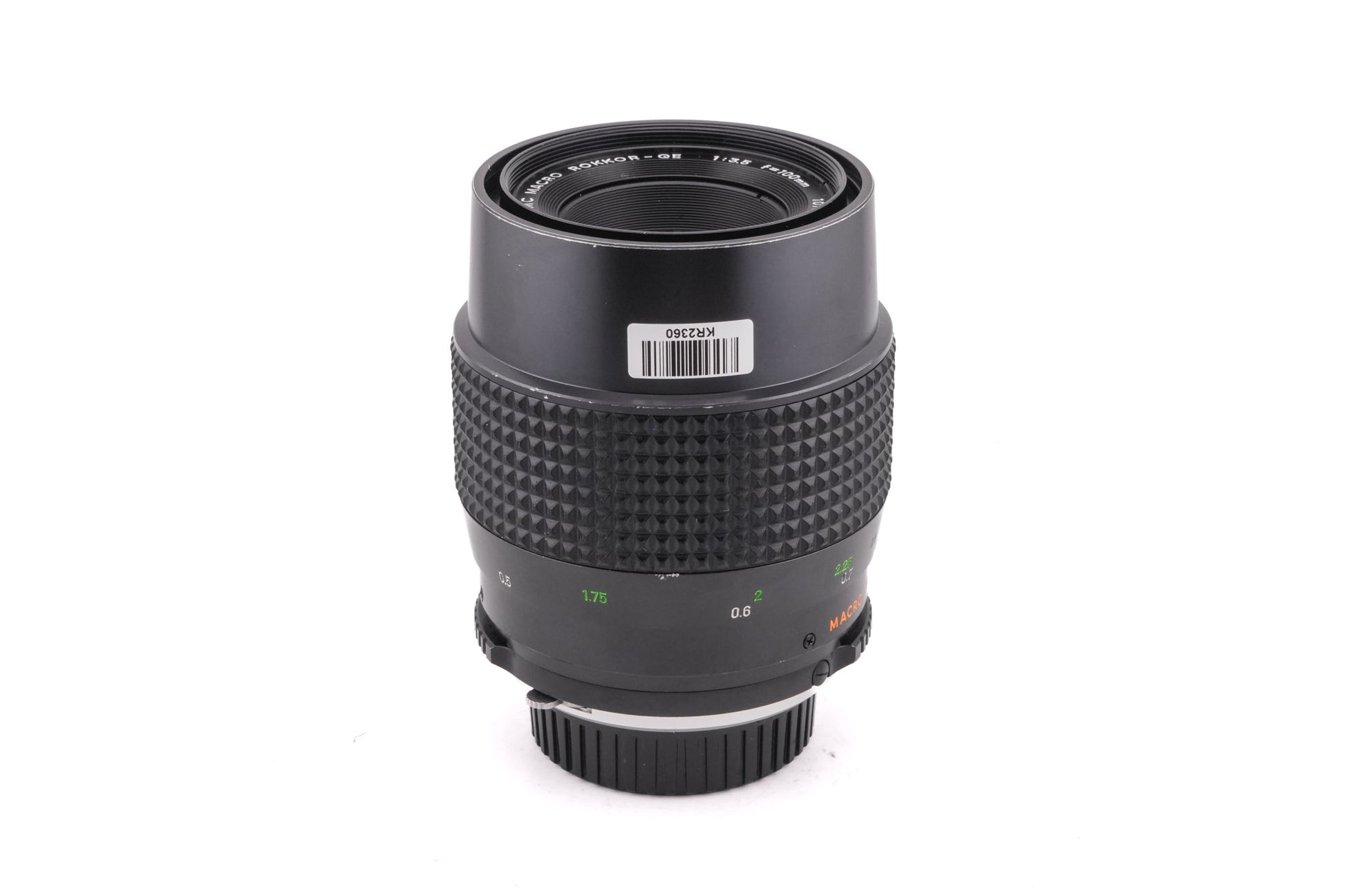 Manual focus macro telephoto lens made for MD-mount 35mm SLR cameras introduced by Minolta. Metal body available in black.