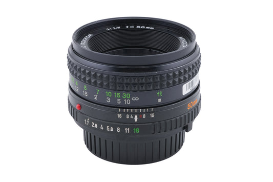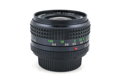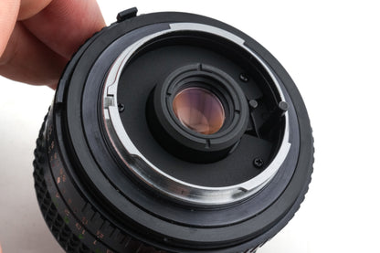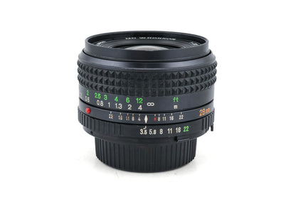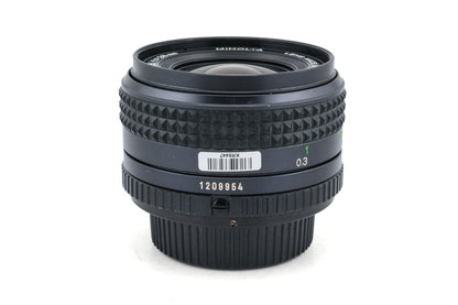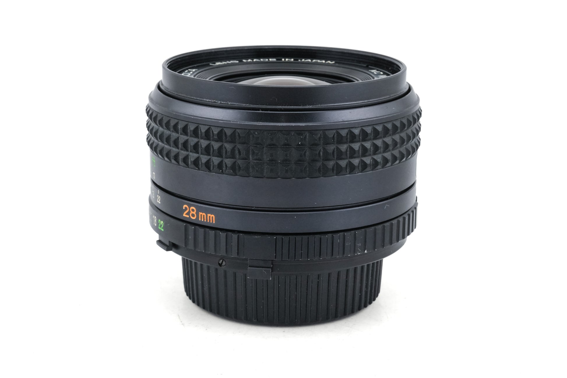 Manual focus wide-angle lens made for MD/SR mount SLRs by Minolta starting in 1977. Metal body available in black.
