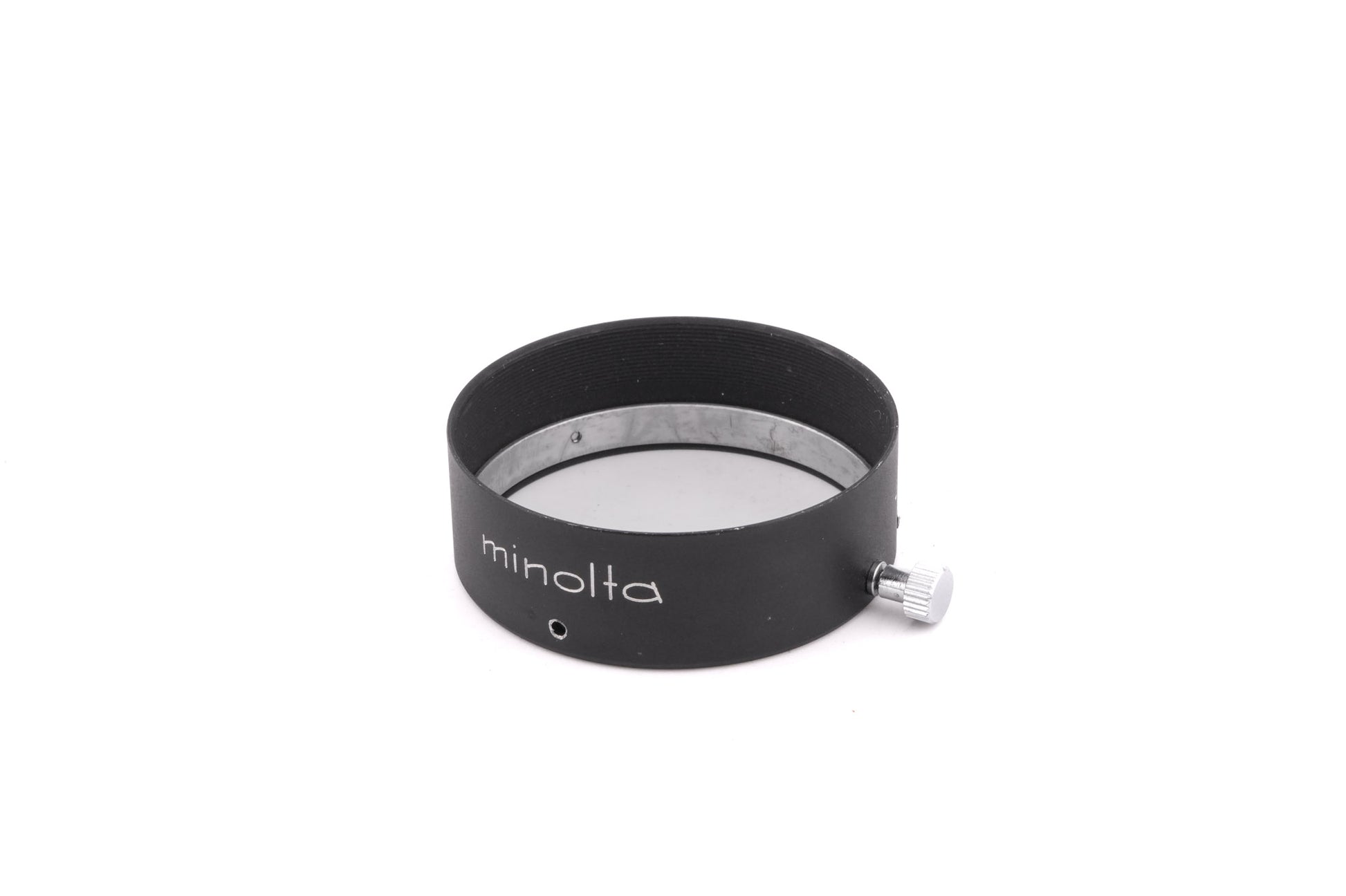 Clamp-on lens hood made by Minolta. Metal body available in black.