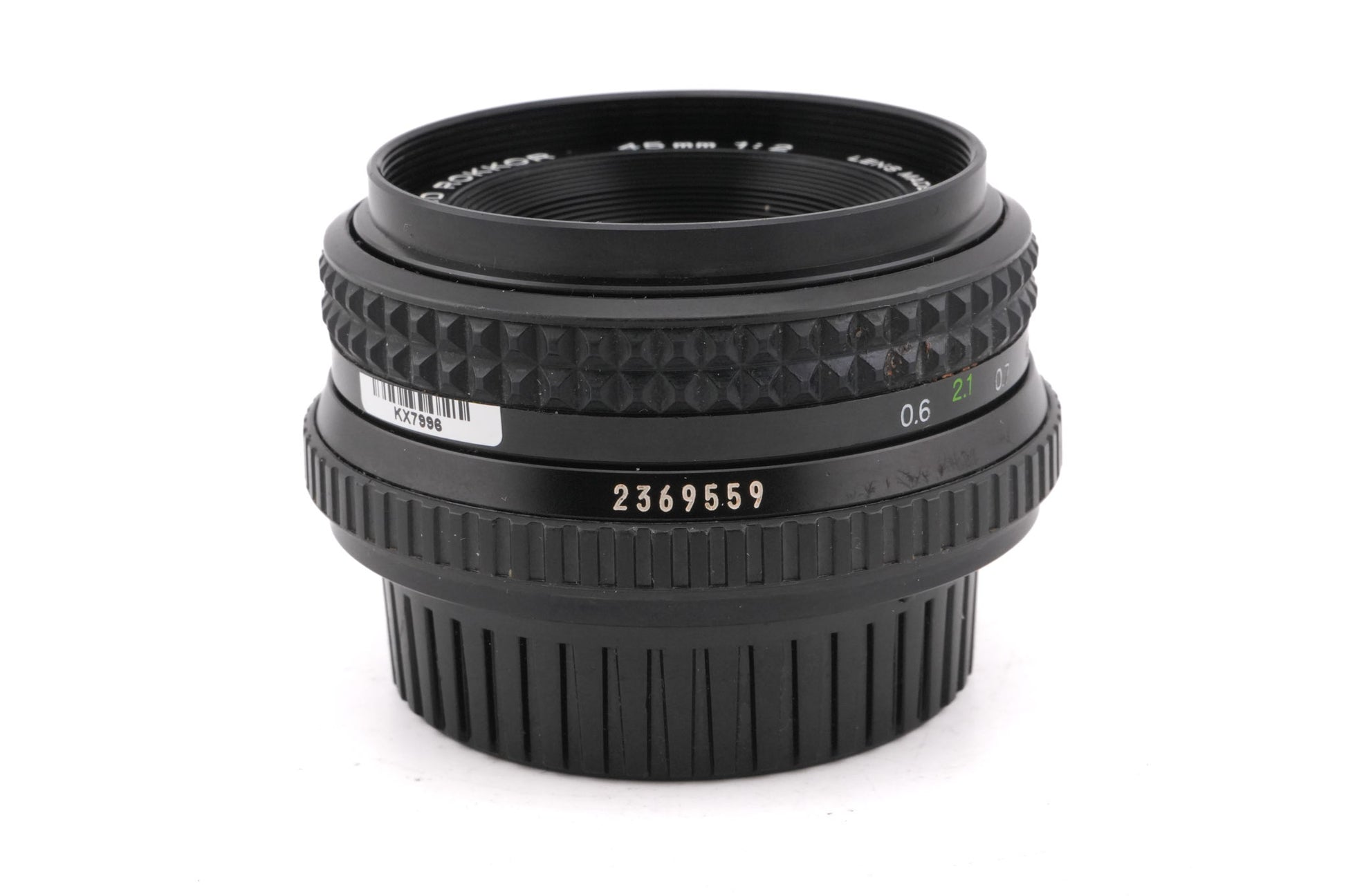 - Minolta 45mm f2 MD Rokkor (6 elements, 5 groups)