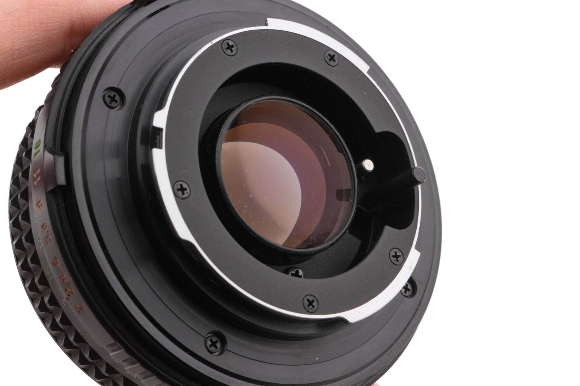 Manual focus normal lens made for MD-mount 35mm SLR cameras by Minolta. Metal body available in black.