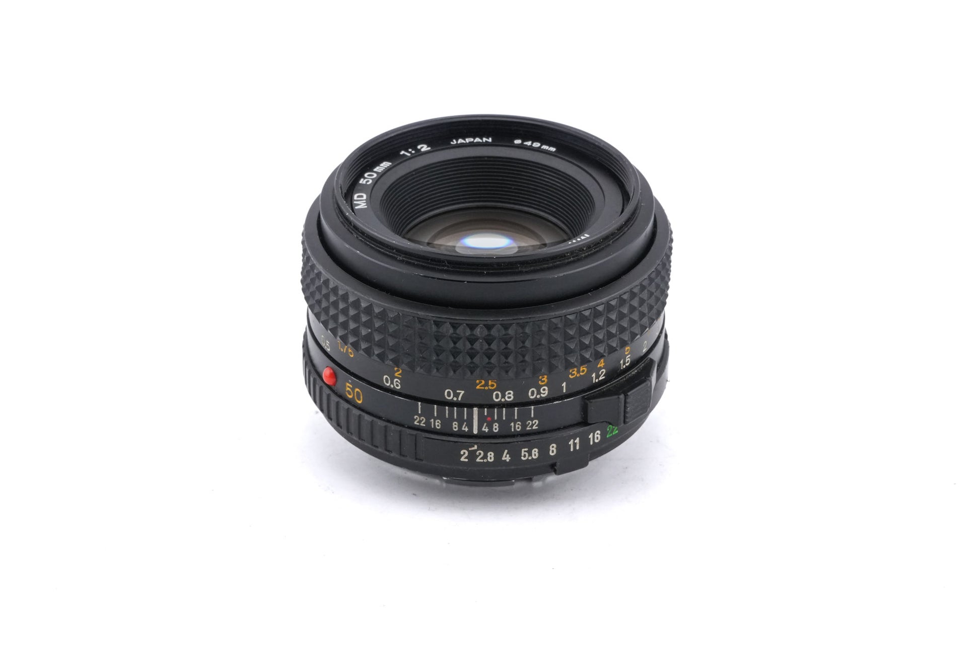 - Minolta MD 50mm f2 (6 elements, 5 groups)