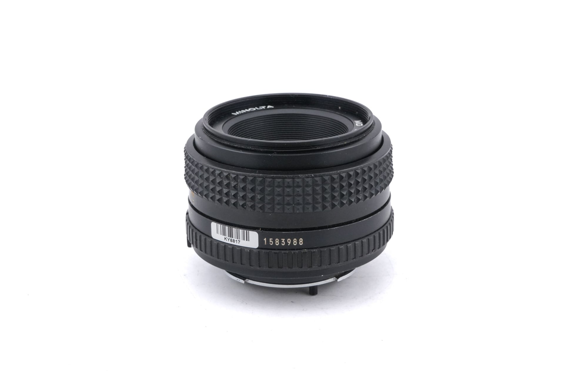 Manual focus normal lens made for MD-mount SLRs by Minolta. Lightweight and compact design. Metal body available in black.