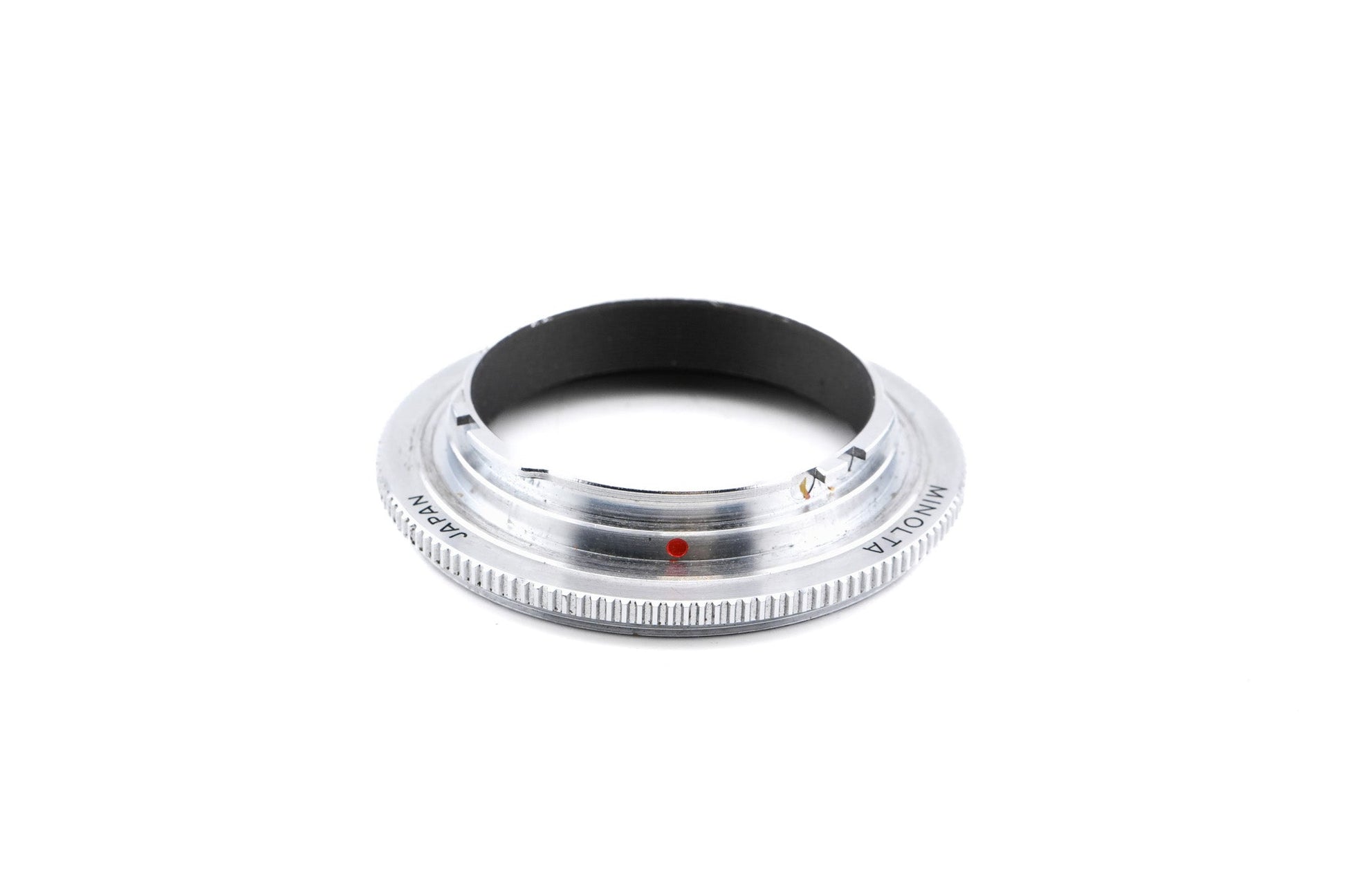 Reverse lens mounting ring made by Minota. It allows you to mount lenses with 55mm filter threads backwards on your SR/MD-mount camera. Metal body available in silver.