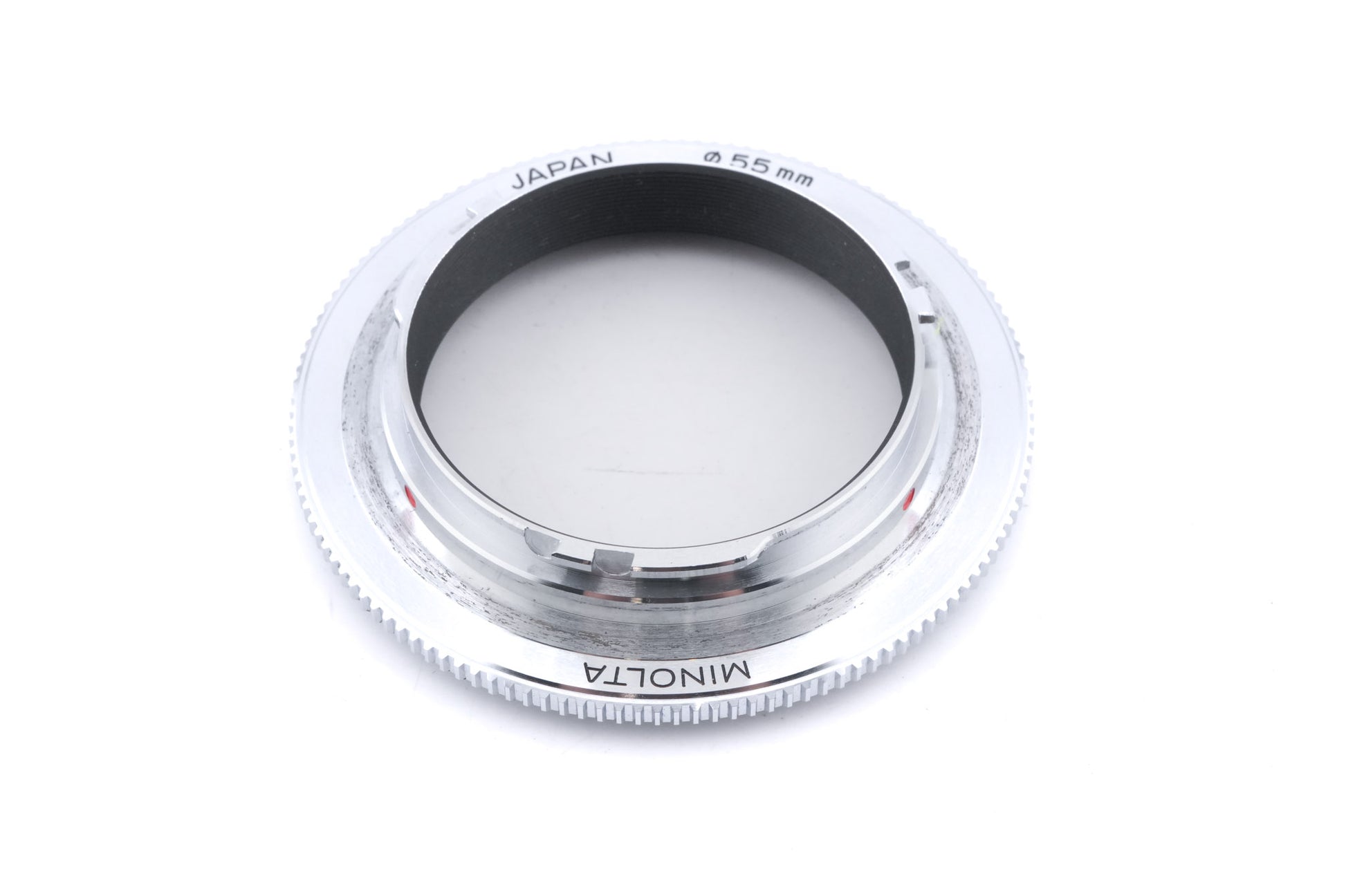 Reverse lens mounting ring made by Minota. It allows you to mount lenses with 55mm filter threads backwards on your SR/MD-mount camera. Metal body available in silver.