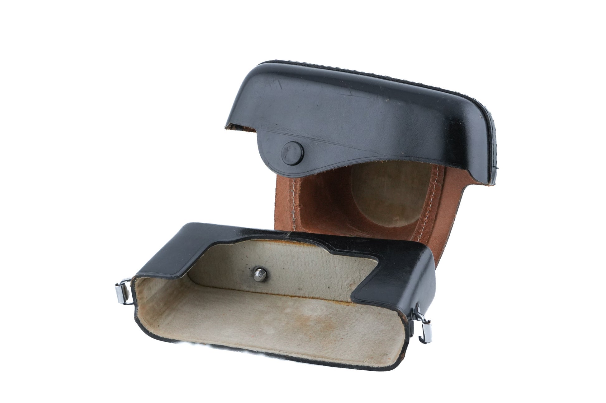Leather case for the Minolta Uniomat 35mm rangefinder camera. Leather body available in black, and brown.