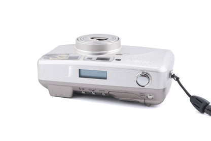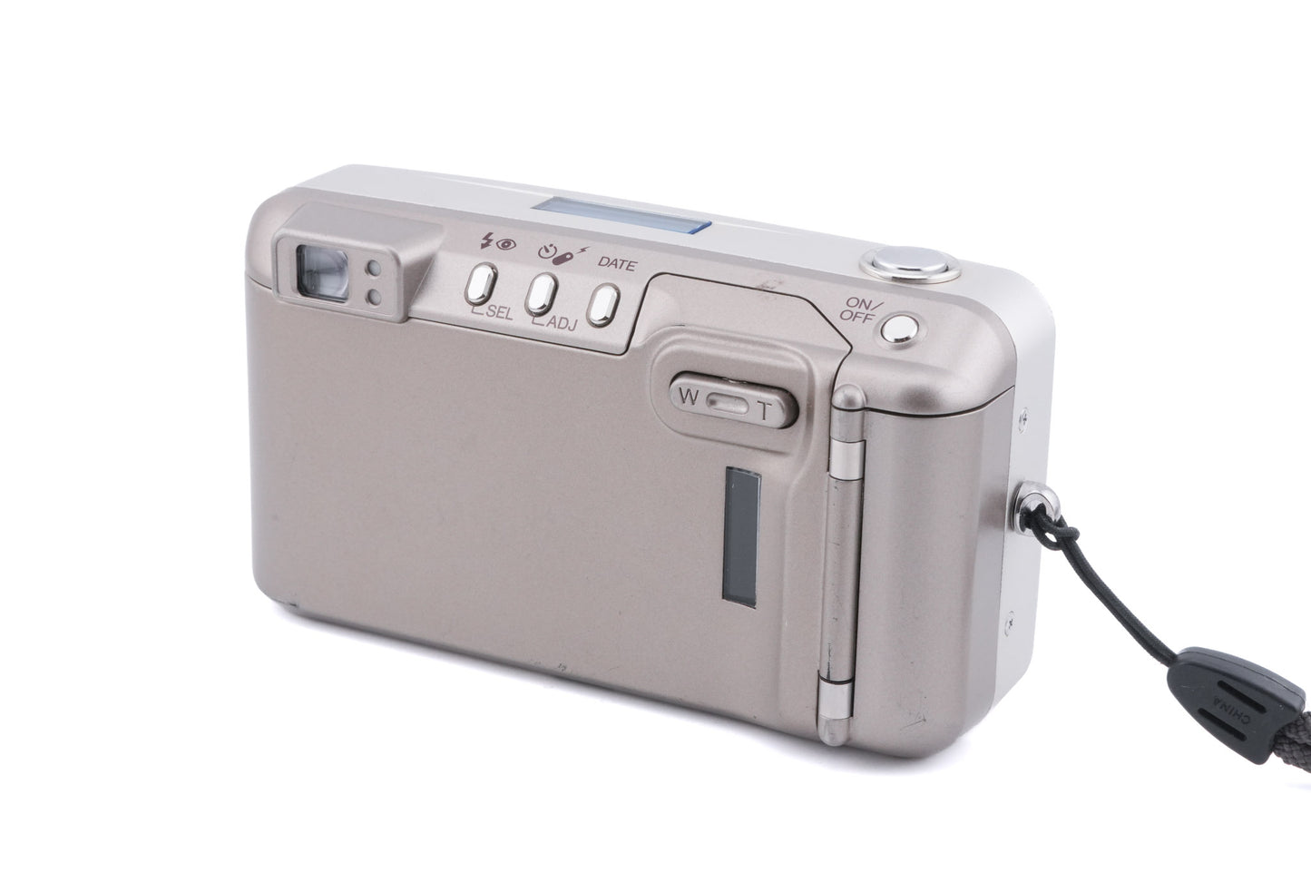 Autofocus compact 35mm point-and-shoot camera made by Minolta introduced in 2000. Has a built-in flash, a self-timer, and a date imprinting function. Plastic body available in silver.