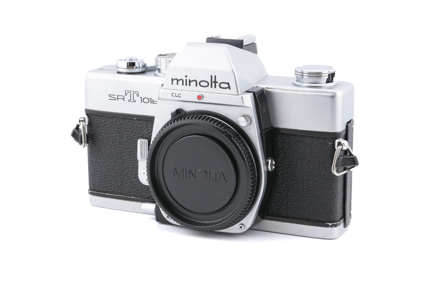 Manual focus Minolta MD mount 35mm SLR released by Minolta in 1966. It uses Minolta's CLC system, an early form of matrix metering that uses two photocells to calculate average exposure. The B model removed the mirror lock-up functionality but added a hot shoe. The camera is also known as the SR-T 201 (NA) and SR 101 (JP). Metal body available in black & silver.