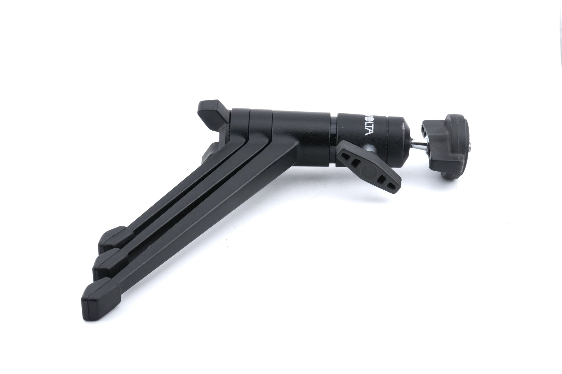 Table-top tripod for DSLR/SLR cameras made by Minolta. Metal construction available in black.