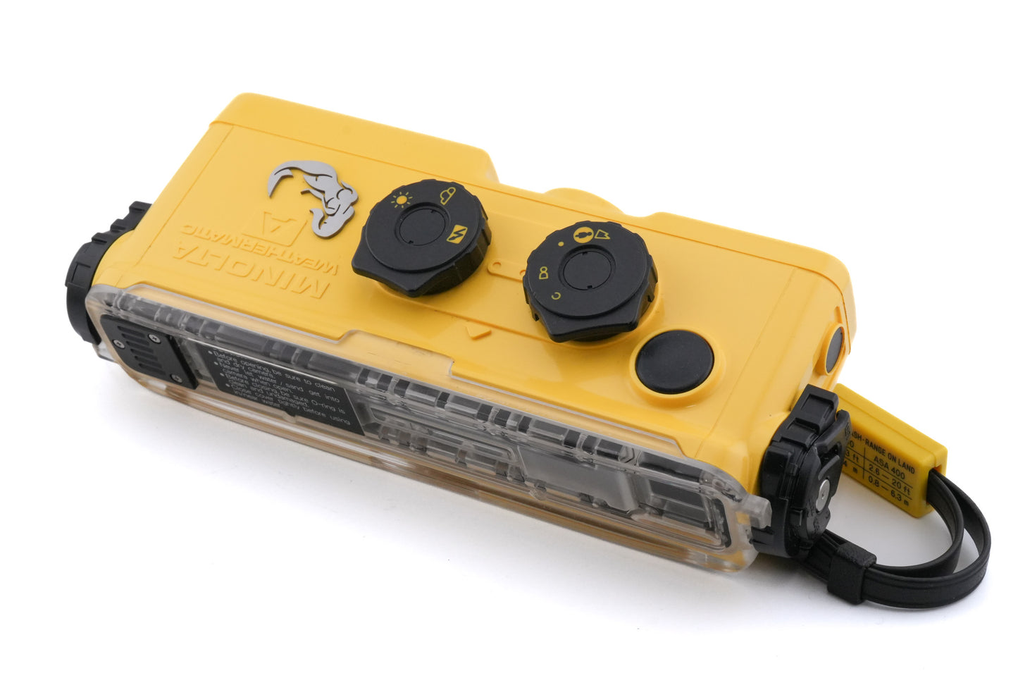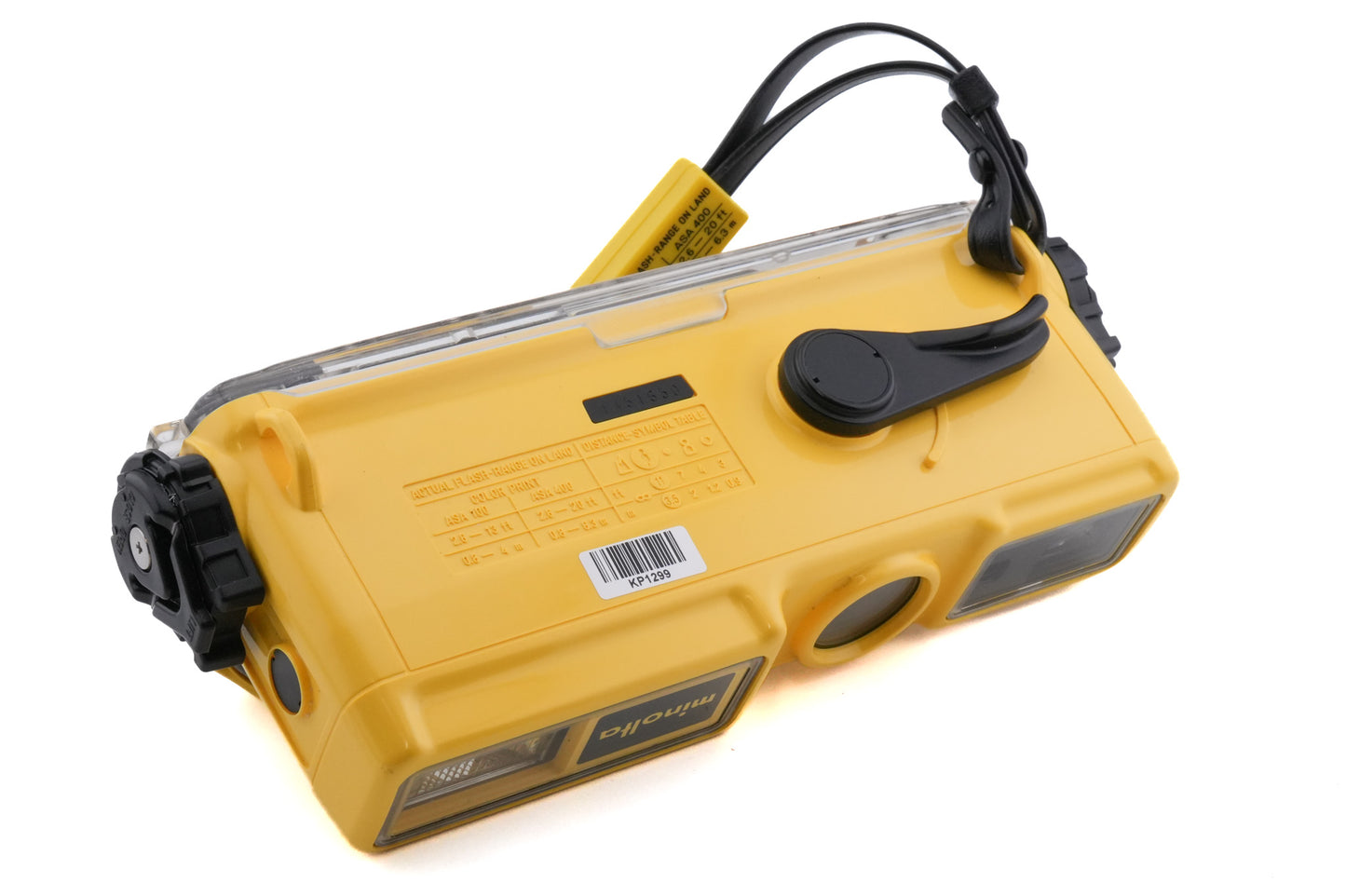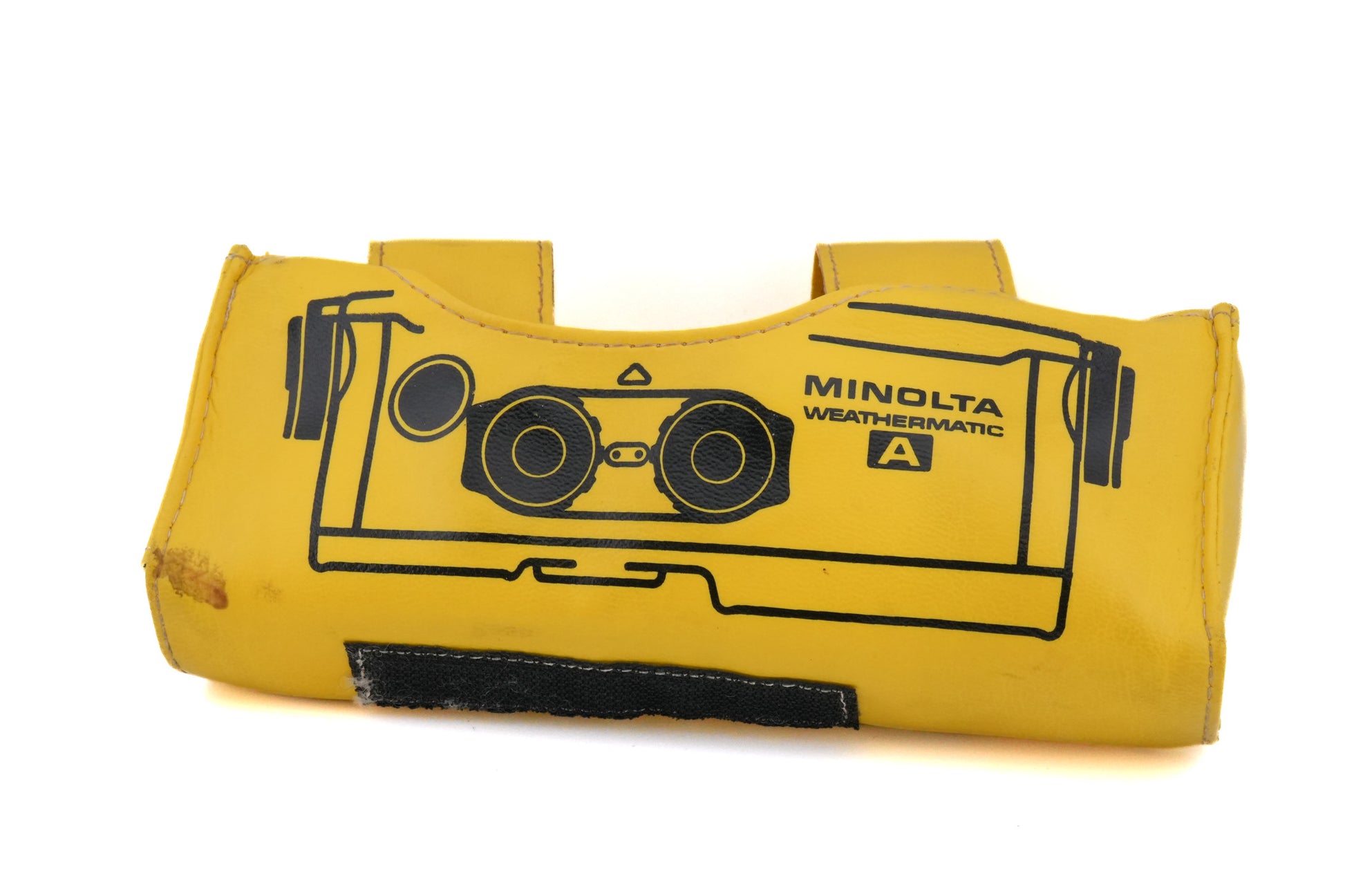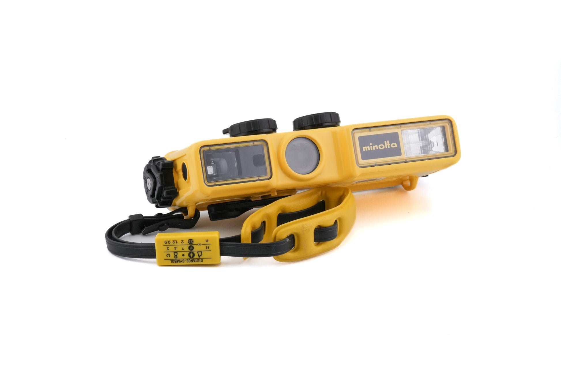 Weatherproof Minolta camera that uses 110 film. Water-sealed, and with large controls to facilitate easy use while wearing gloves.