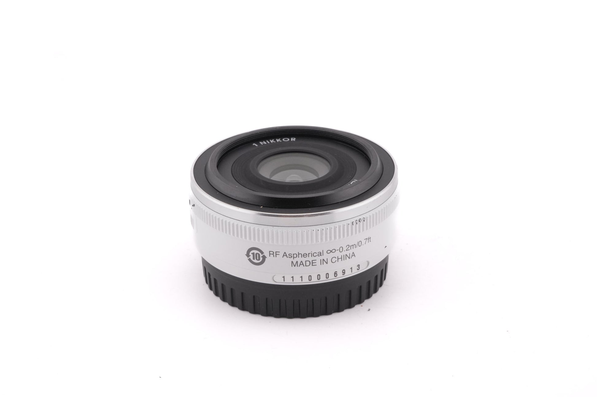 Autofocus wide-angle lens made for the Nikon 1 mirrorless digital camera by Nikon. It has a 27mm full-frame equivalent focal length. Plastic and metal body available in black & white.