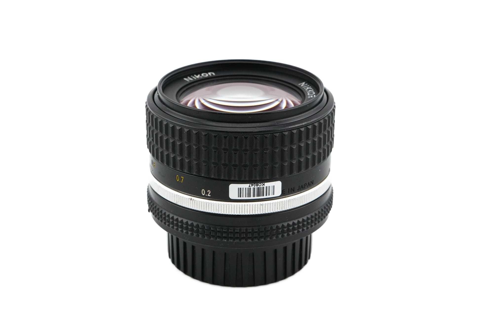Manual focus wide-angle lens made for the F-mount SLR cameras by Nikon. Metal body available in black finish with silver accent.