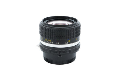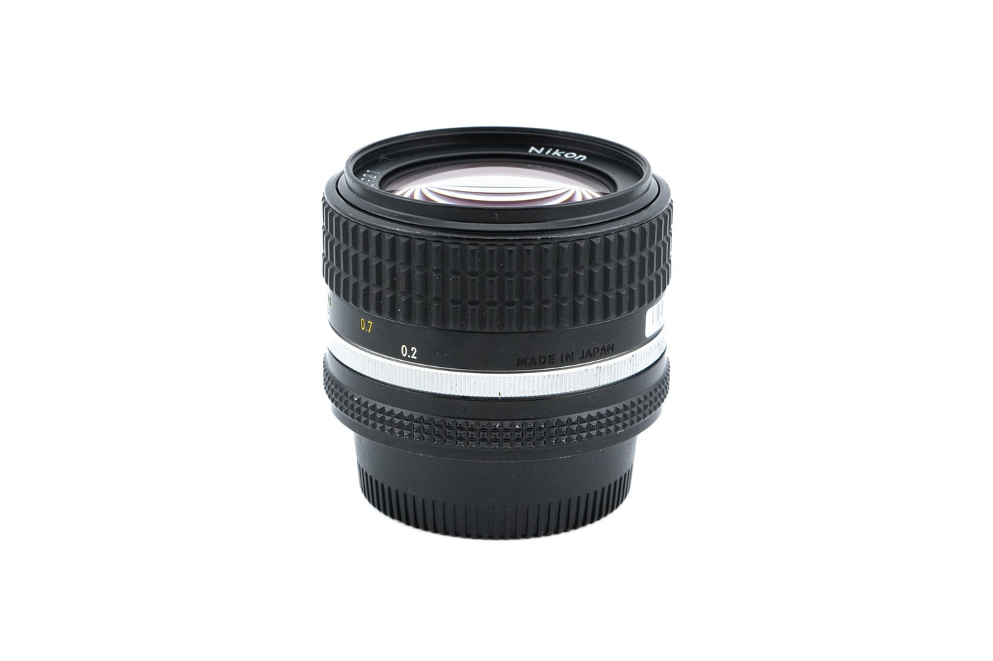 Manual focus wide-angle lens made for the F-mount SLR cameras by Nikon. Metal body available in black finish with silver accent.