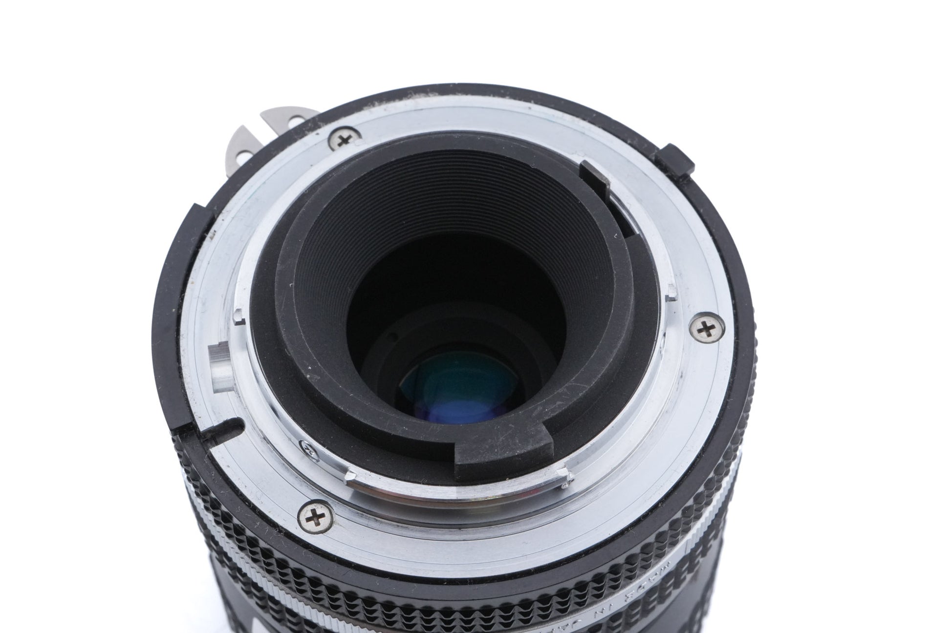Manual focus zoom lens made for F-mount 35mm SLR cameras introduced by Nikon starting in 1984. It has the bunny ear metering prongs, AI ridge, and AI-S indent so it will meter properly on all manual focus Nikons and can be used with the advanced program modes of later models. Plastic and metal body available in black.
