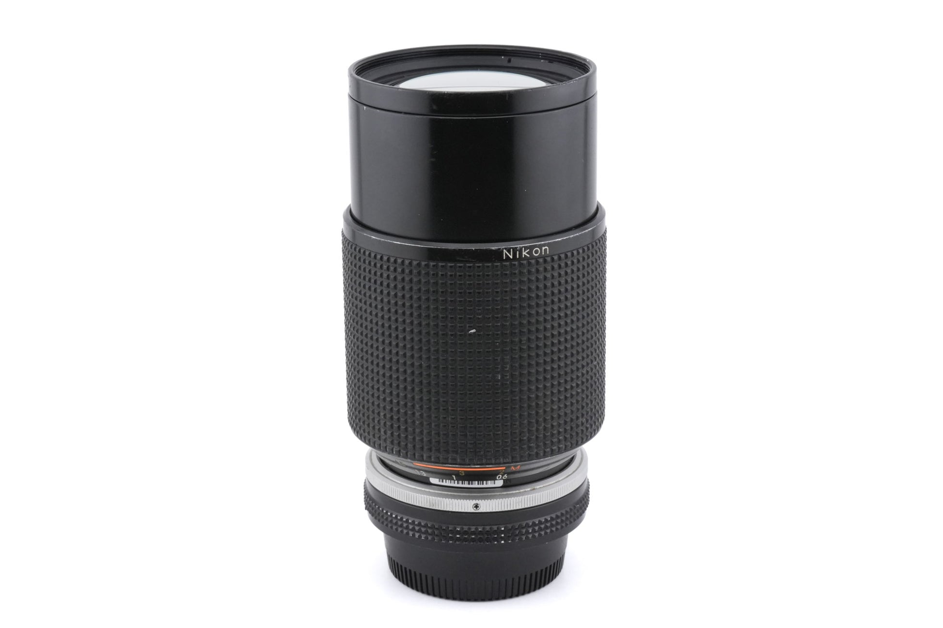 Manual focus push/pull telephoto zoom lens made for Nikon F mount SLR cameras by Nikon introduced in 1982. Metal body available in black.