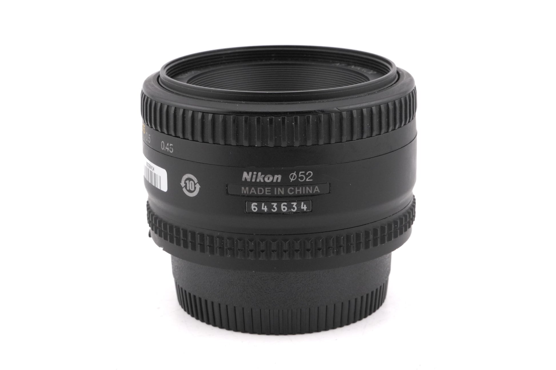 Autofocus normal lens made for F-mount SLR cameras by Nikon. It does not have a built-in focus motor, so autofocus does not work on the cheaper Nikon cameras. Plastic and metal body available in black.