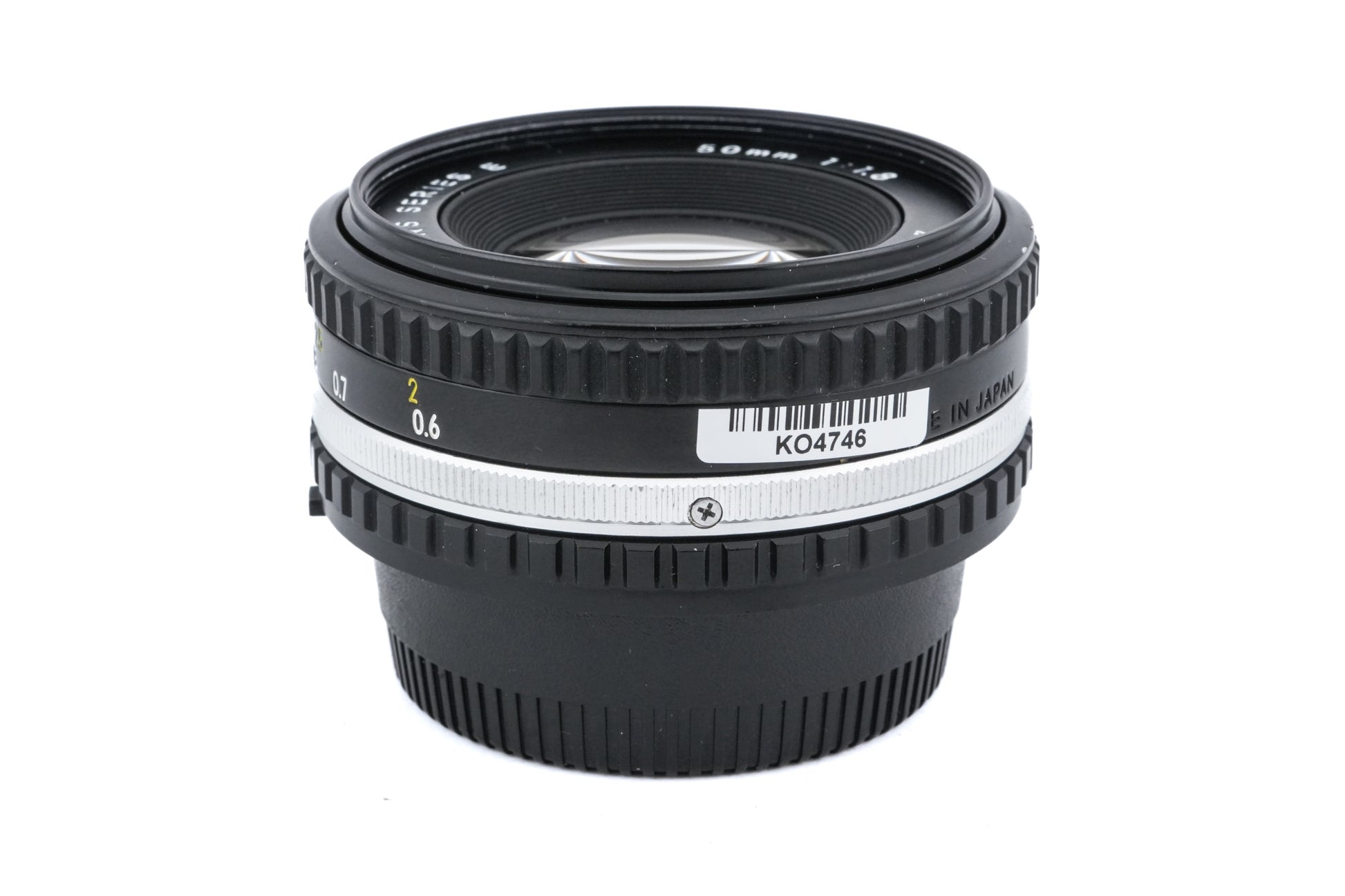 Manual focus normal lens made for F-mount 35mm SLRs by Nikon. It does not have the bunny ear metering prongs but does have the AI ridge and AI-S indent, so it will meter properly on nearly all manual focus Nikon cameras (excluding F, F2, and Nikkormat) and will work with the advanced program modes of later models. Early versions are all black, and later versions have a chrome ring. Metal and plastic body available in black.
