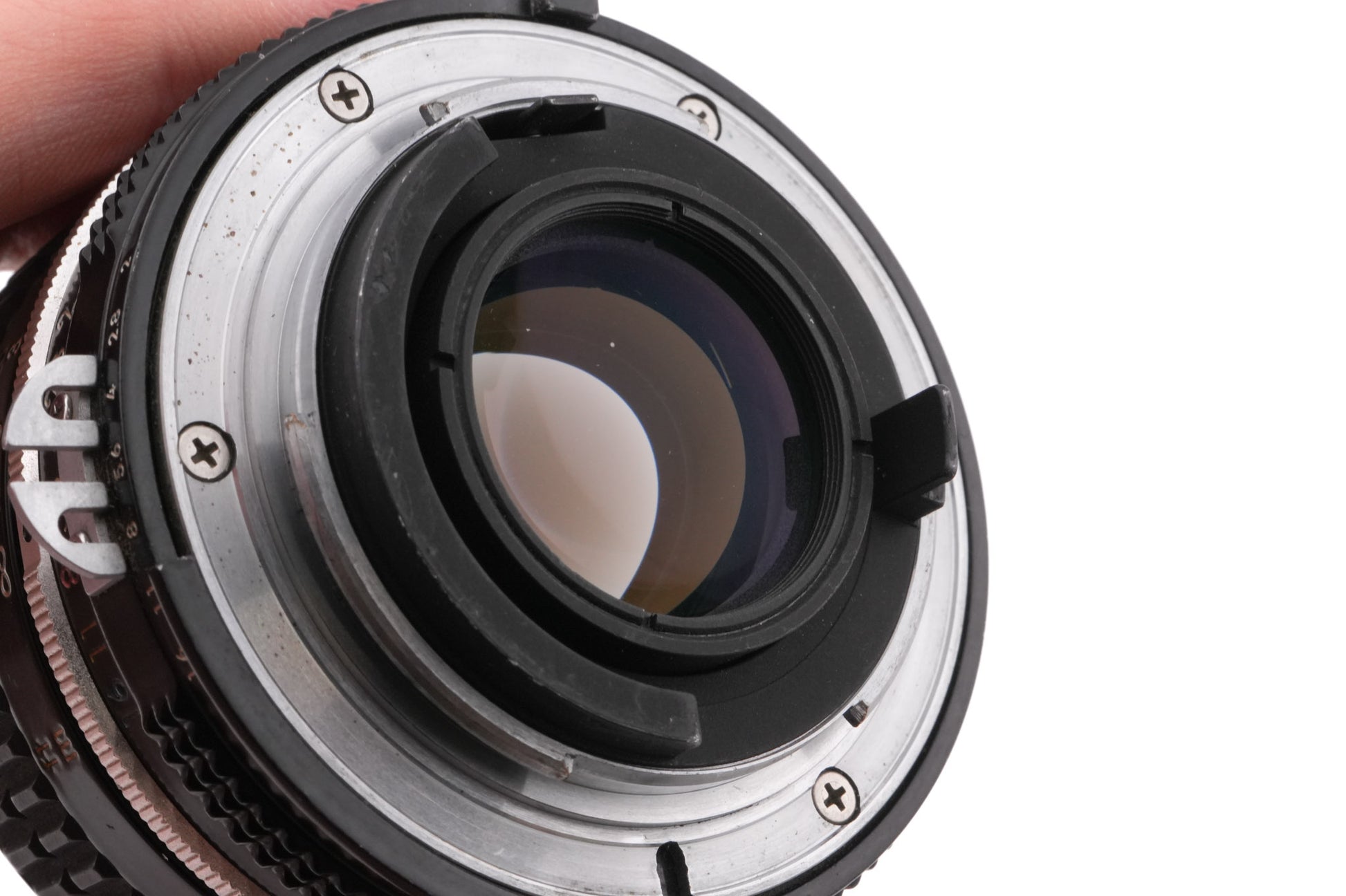 Manual focus normal lens made for F-mount SLRs by Nikon. This lens uses the same optical formula as the earlier 5cm f2 Nikkor-H introduced in 1964, although later versions of this lens added multi-coatings. It has the bunny ear metering prongs and AI ridge, but no AI-S indent, so it will meter properly on all manual Nikon cameras, but can't be used with the advanced program modes of later models. Metal and plastic body available in black.