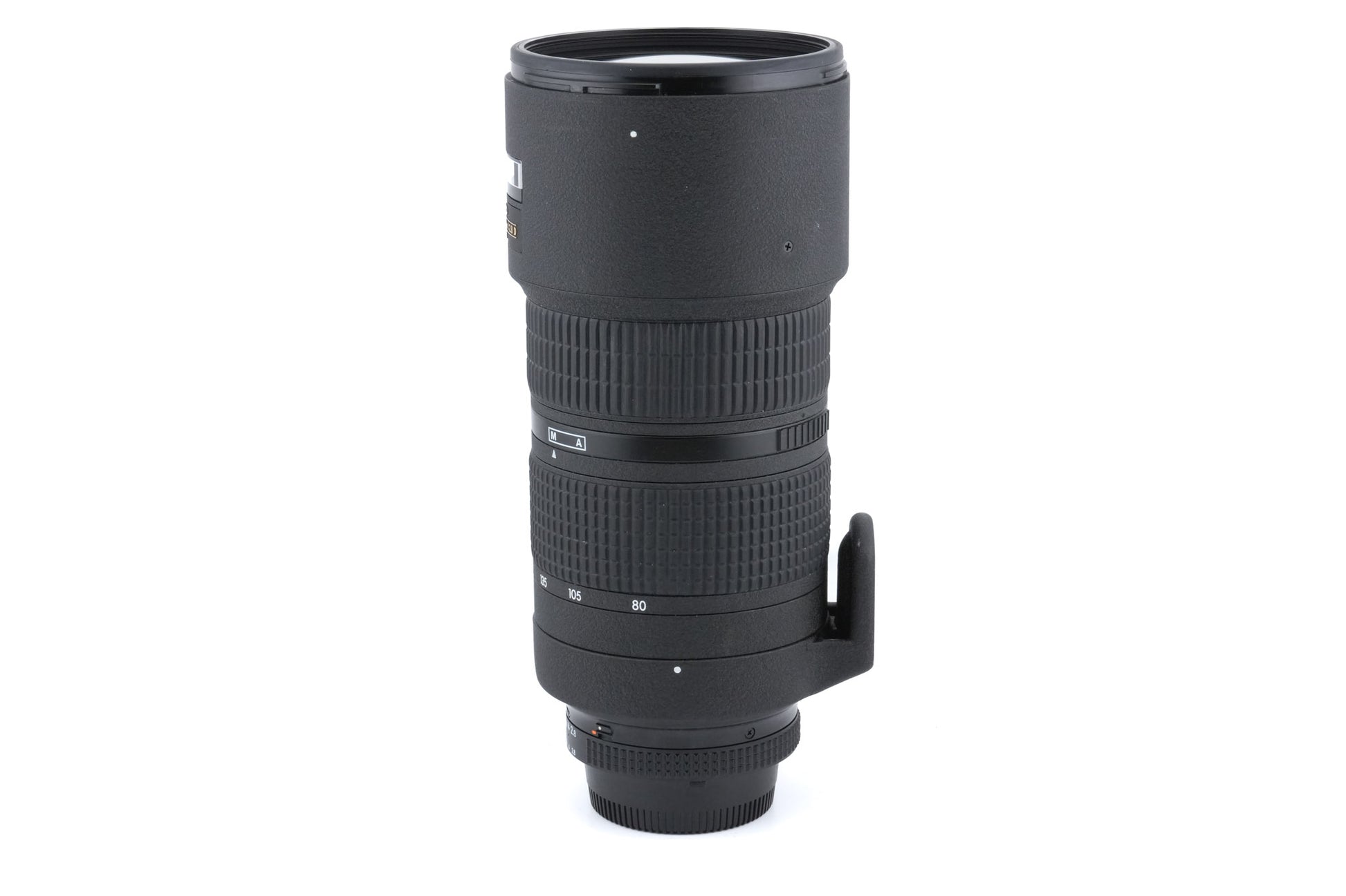 Autofocus telephoto lens made for F-mount SLRs by Nikon starting in 1997. This is the second version of the older lens (1993) with the same name. It has faster autofocus than the first version and uses a two-touch zoom design rather than the push/pull design of the first version. The optical structure has three ED (Extra-low Dispersion) elements. It has an aperture ring with an AI ridge and AI-S indent so it will work on most manual (excluding F, F2, and Nikkormats) Nikon bodies and will work with the advanced program modes of later models. Metal body available in black.