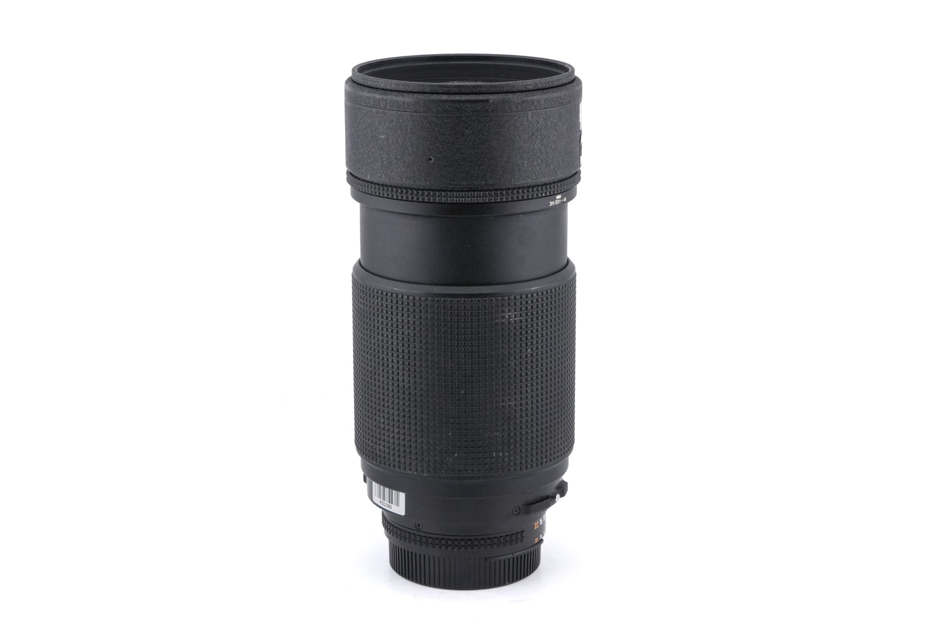 Autofocus telephoto push/pull zoom lens made for F-mount 35mm SLR cameras introduced by Nikon in 1988. It was Nikon's first professional zoom lens. Metal and plastic body available in black.
