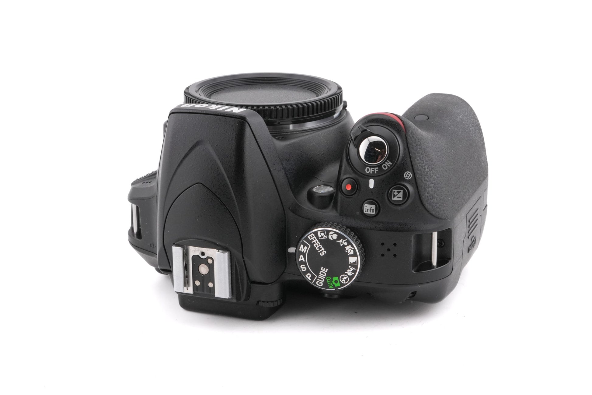 Autofocus APS-C DX-mount DSLR camera released by Nikon in 2014. It has full HD 1,920x1,080 / 60 fps movie capabilities, a three-inch LCD monitor, and a self-timer: 2, 5, 10, 20 sec with 1 to 9 exposures. This model does not have an in-body autofocus motor so the AF requires a lens with an integrated autofocus motor. Plastic and metal body available in black.
