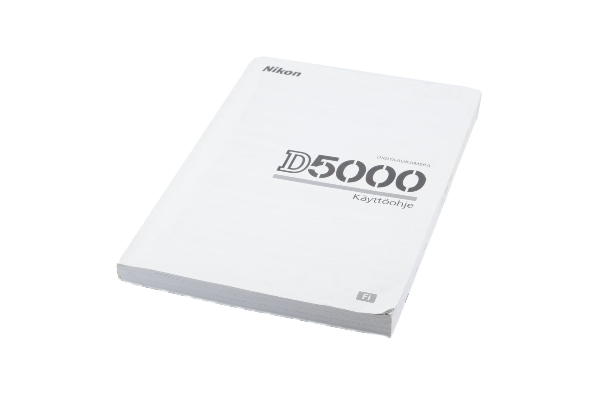 Instructional manual for the Nikon D5000 DSLR. Thick paper booklet.