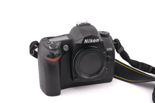 Autofocus APS-C F-mount digital SLR camera released by Nikon in 2004. It had a larger screen and better battery than the original D70. Metal/plastic body available in black.