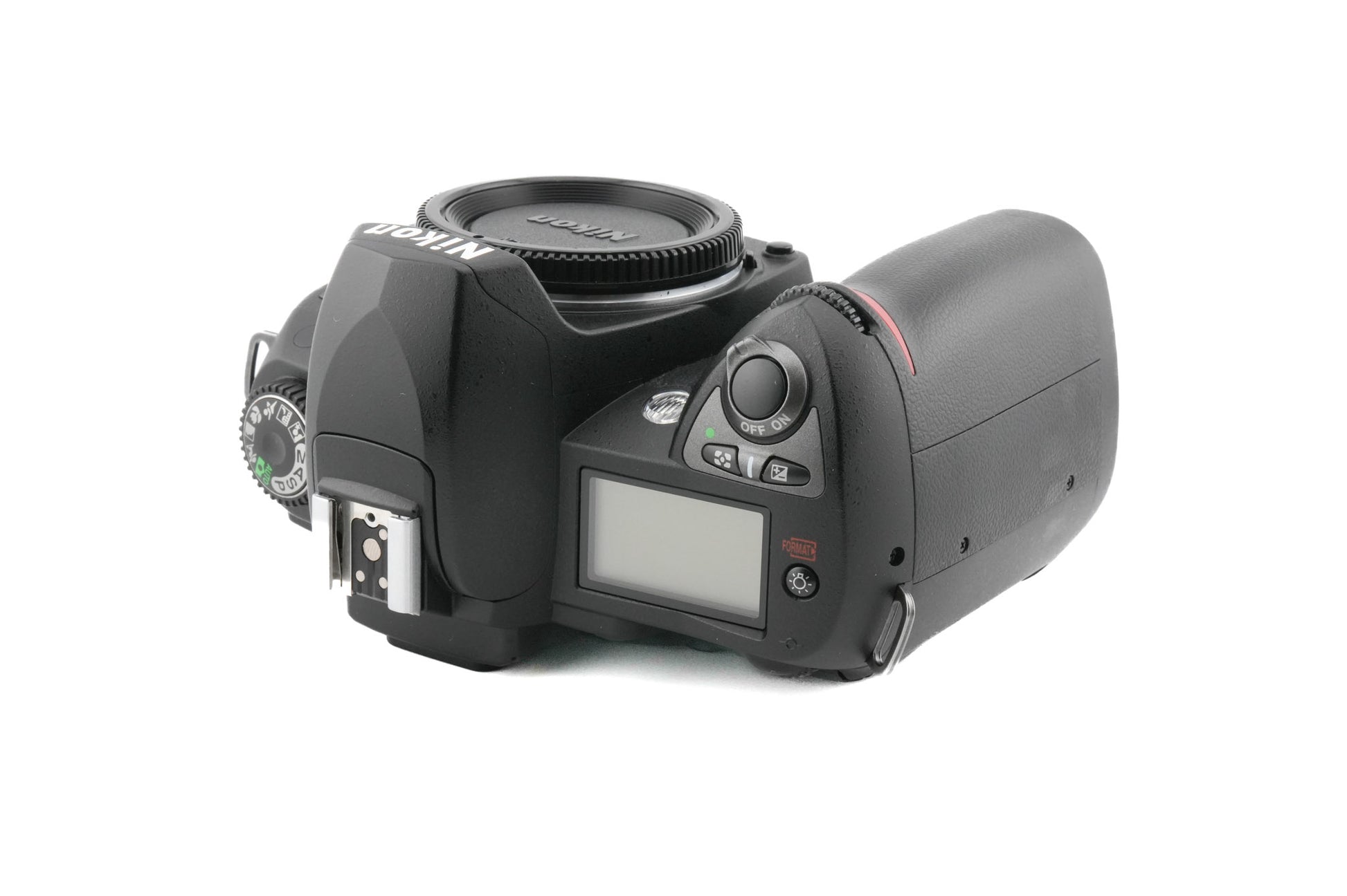 Autofocus APS-C F-mount digital SLR camera released by Nikon in 2004. It had a larger screen and better battery than the original D70. Metal/plastic body available in black.