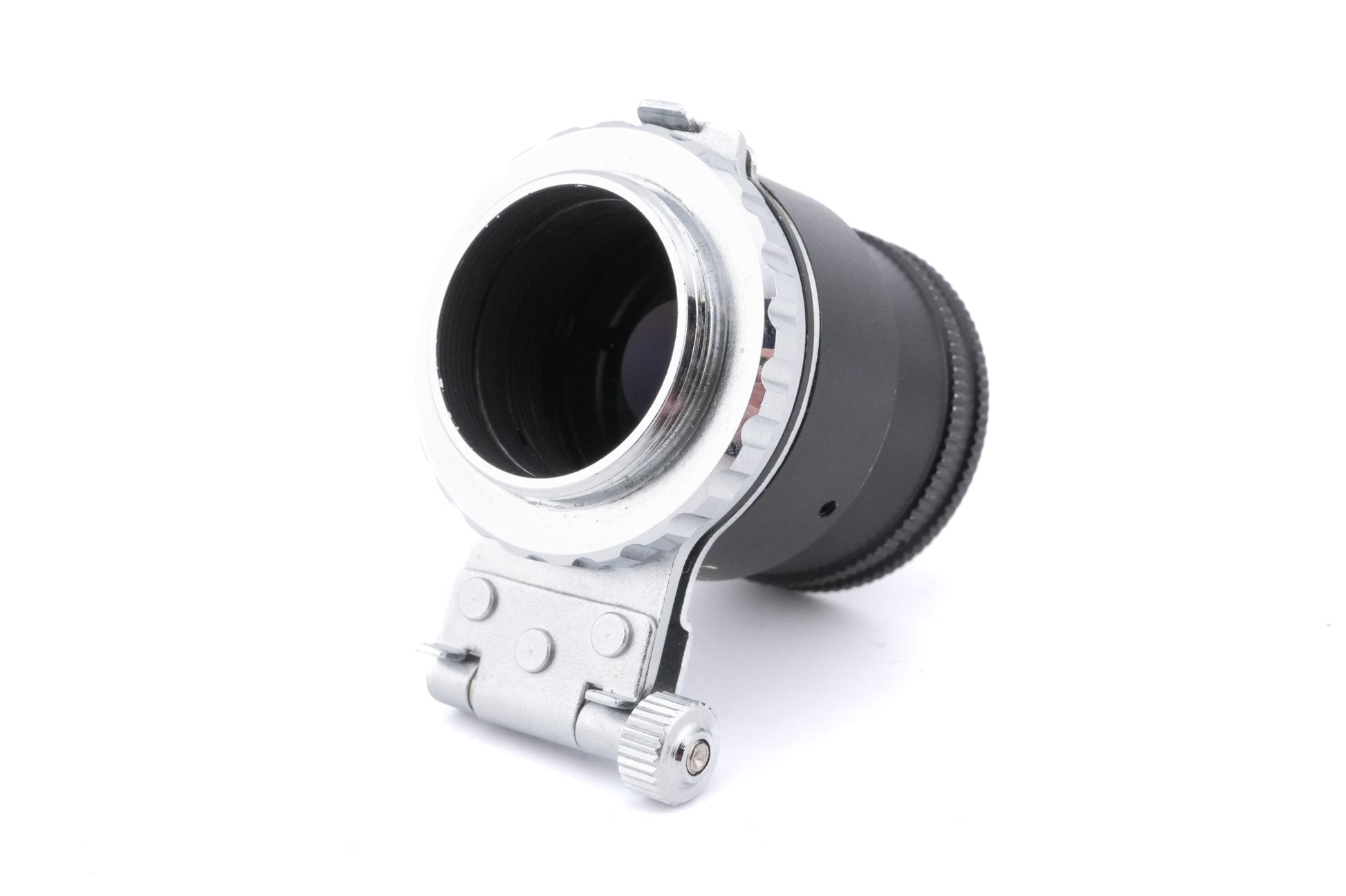 Eyepiece magnifier made by Nikon. It fits the Nikon F, F2, FE, FM series, FA, and Nikkormats. It provides 2x magnification and has dioptric correction from -5 to +1. Metal body available in black.