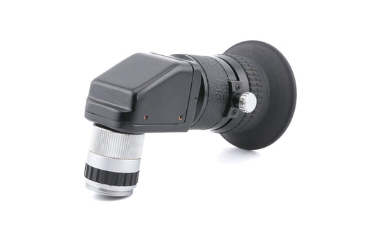 Angle finder made by Nikon for their F-mount 35mm SLRs. Attaches to all F mount SLRs with the 19mm thread finders including F, F2, FM, FE, FM2, FE2, FA, F3, and FM3a. Can be attached to other cameras using the DK-7 and DK-18 adapters. Black and silver metal construction.