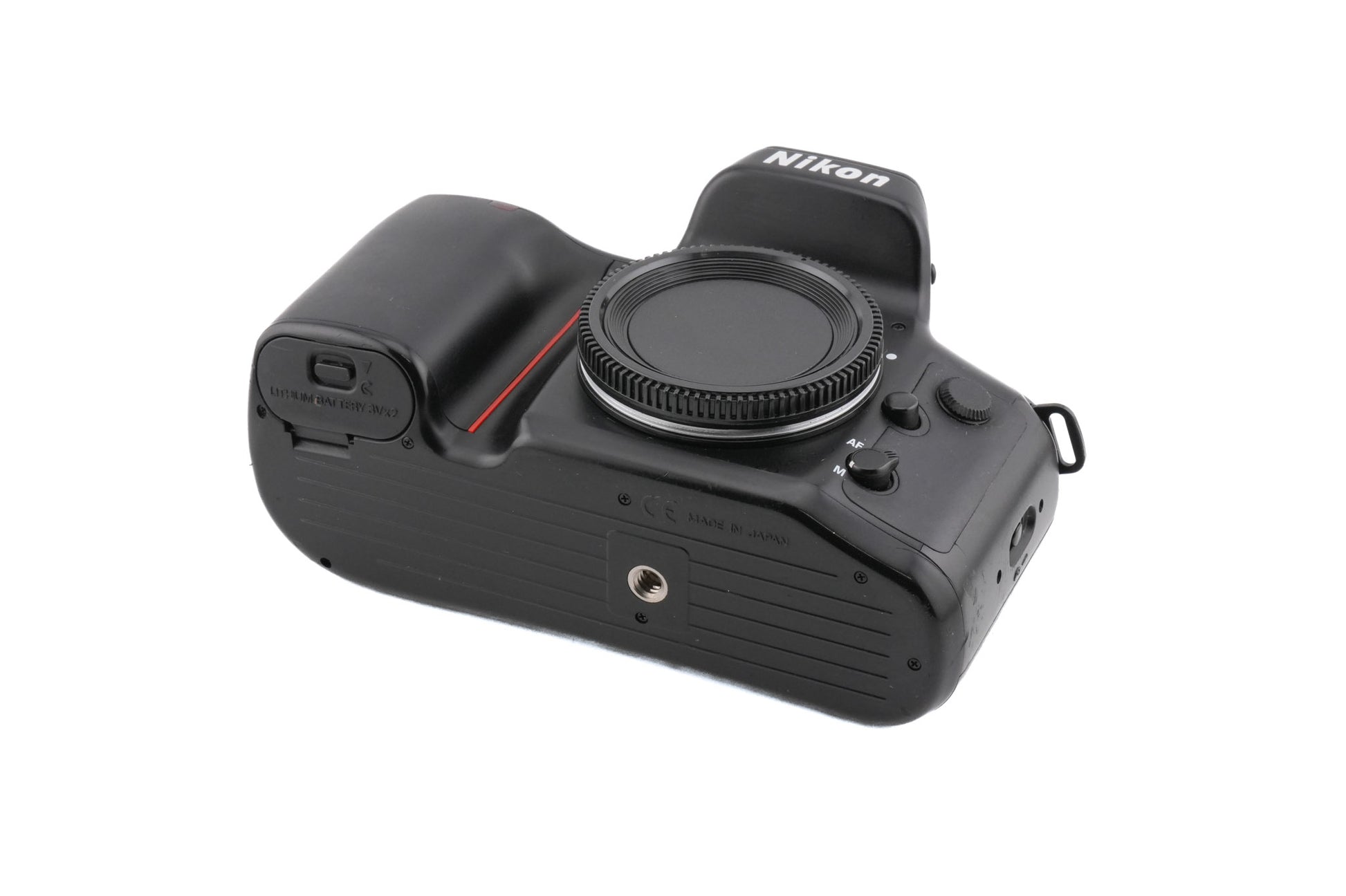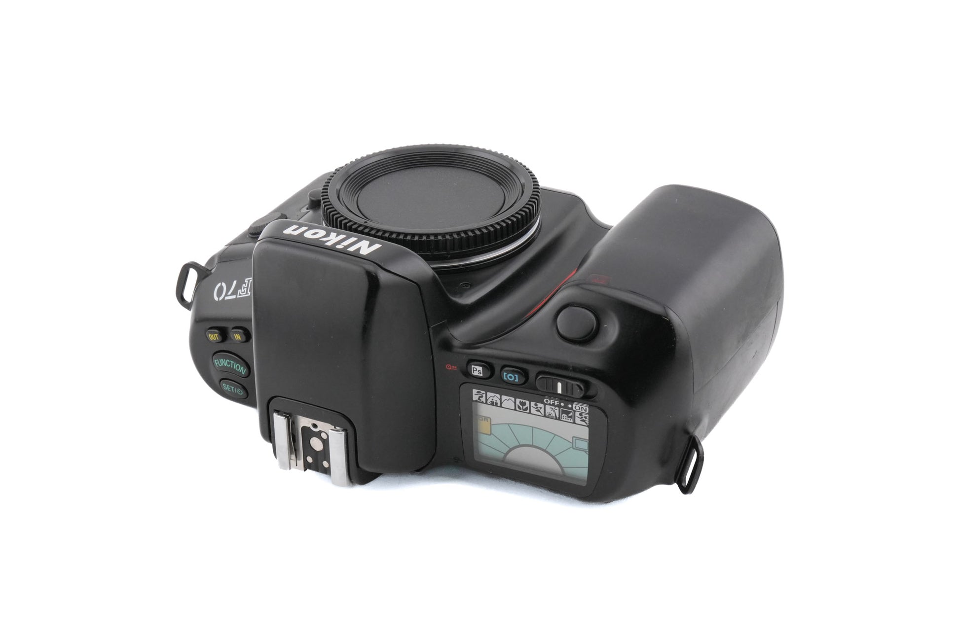Autofocus 35mm F-mount 35mm SLR camera released by Nikon in 1994. This camera is known for its unusual user interface which uses a combination of function and set buttons along with the thumb wheel to navigate the settings. The camera has lots of programmed automatic exposure modes along with accurate Nikon metering. Metering modes available are matrix, center-weighted, and spot. The F70D version features built-in panorama mode and data back. Plastic body available in black.