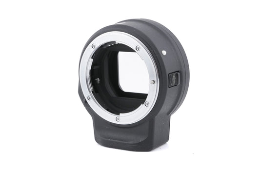 Lens adapter made for Z-mount mirrorless digital cameras introduced by Nikon. It is used for attaching certain F-mount lenses to Z-mount digital cameras. It enables autofocus with Nikon AF-S, AF-P, and AF-I lenses. No automatic diaphragm control is supported with manual focus lenses and only manual focusing is available with AF and AF-D lenses. It has an integrated tripod mount. Metal and plastic body available in black.