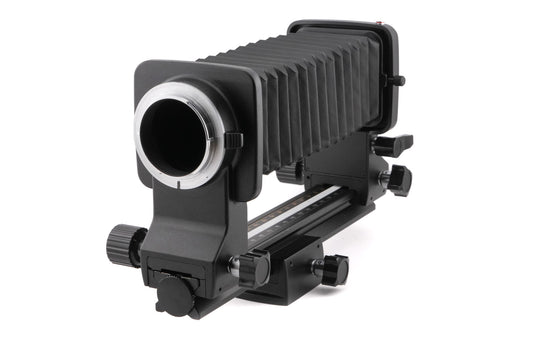 Macro bellows made for F-mount SLRs by Nikon. Bellows extension range is from 48 to 208mm. Metal body available in black.