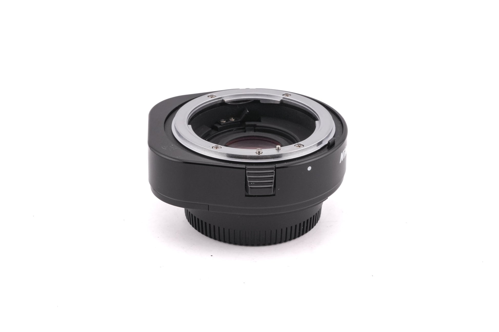 Teleconverter made for F-mount SLRs by Nikon. Multiplies the focal length of your lens by 1.6x at the cost of some light transmission. It also allows manual focus lenses to be used with autofocus. Zoom lenses will need to be refocused after zooming. Requires a body with an in-body focus motor. Metal/plastic body available in black.