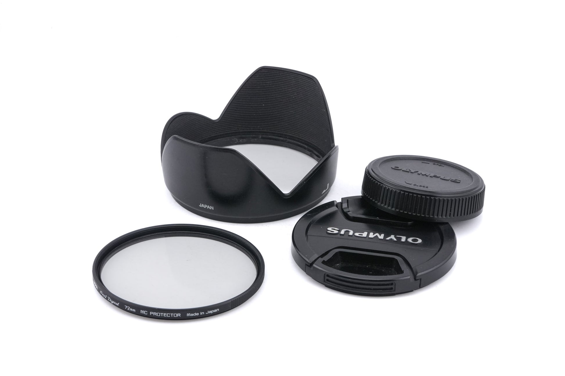 Autofocus general purpose zoom lens made for Four Thirds mount cameras introduced by Olympus in 2007. It is not compatible with Micro Four Thirds cameras. Plastic and metal body available in black.