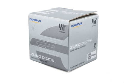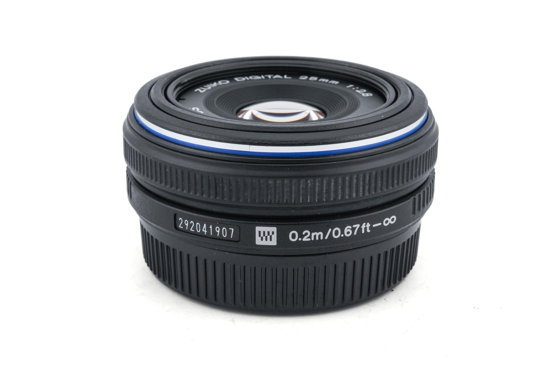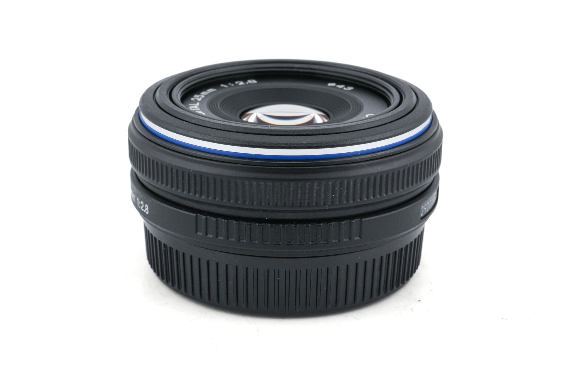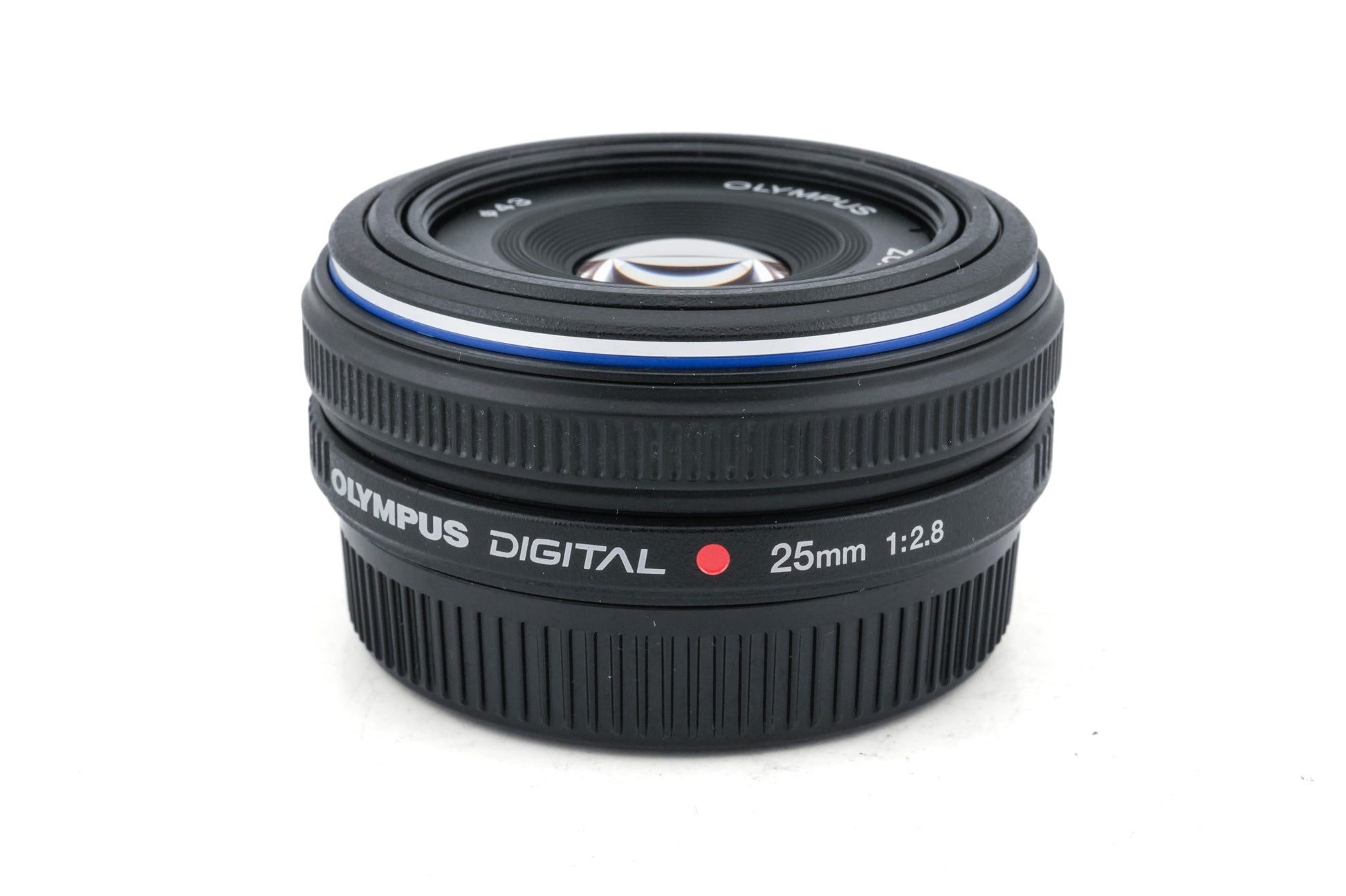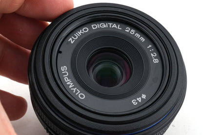 - Olympus 25mm f2.8 Zuiko Digital (5 elements, 4 groups)